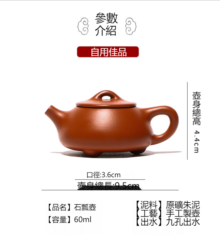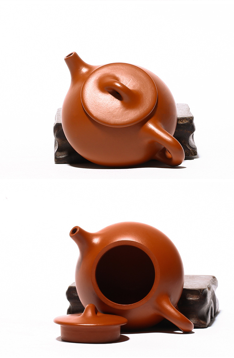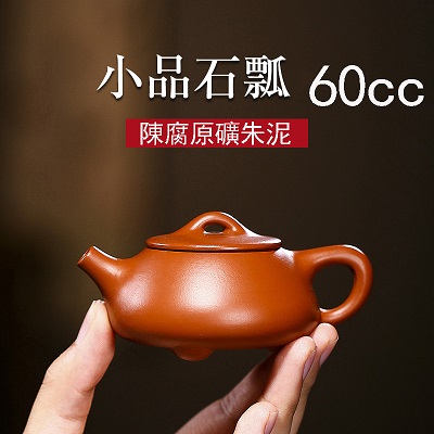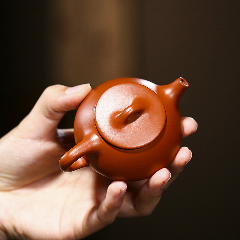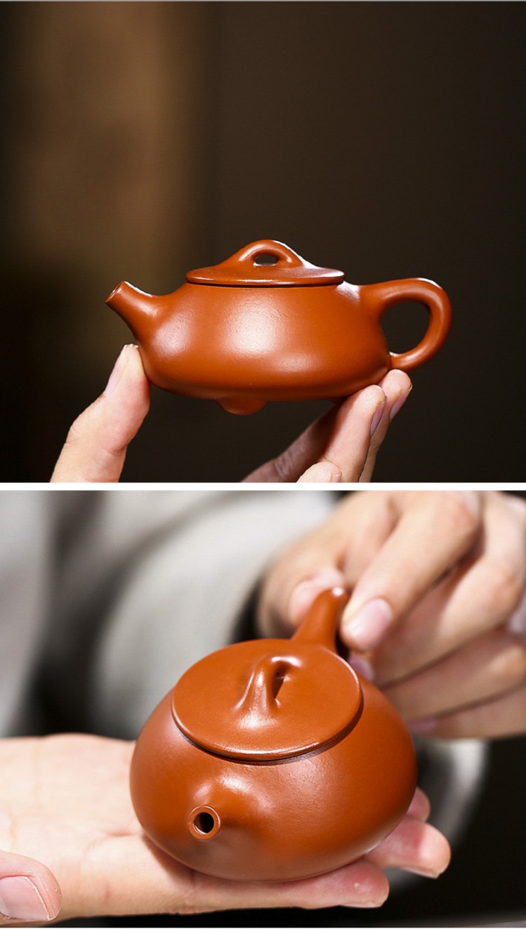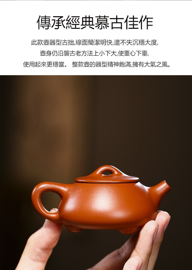 原礦朱泥全手工大紅袍小容量子怡石瓢紫砂壺100cc