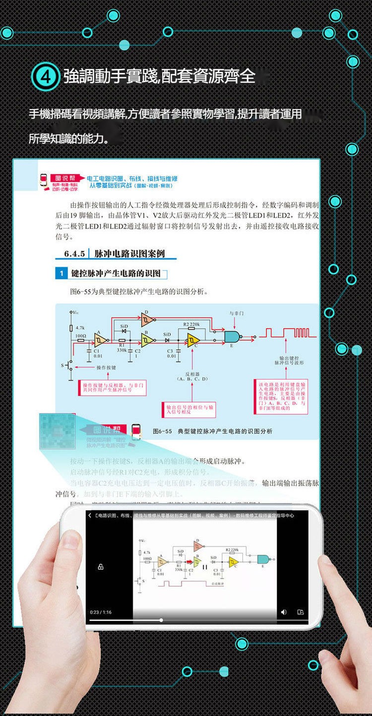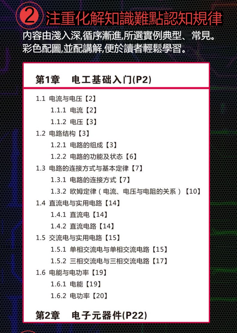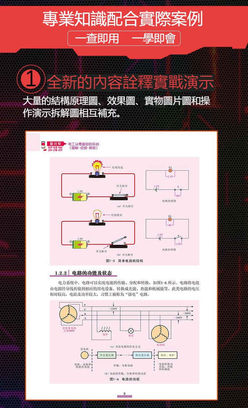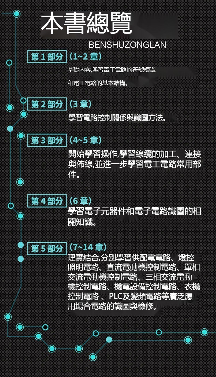 本書是一本專門講解的圖書。本書以國家職業資格標準為指導,結合行業培訓規範,依托典型案例,全面、細緻地介紹電工基礎知識、電工電路、電工操作及電工檢修等綜合實操技能。本書內容包括電工基礎入門、電子元器件、常用電氣部件、電工識圖、電工計算、電工工具和電工儀表、電動機、導線加工與連接、電工安全與觸電急救、電工焊接、電工佈線與設備安裝、供配電線路及檢修、照明控制線路及檢修、電動機控制線路及檢修、變頻器及變頻技術的應用、PLC及PLC技術應用。本書採用全彩圖解的方式,講解全面詳細,理論和實踐操作相結合,內容由淺入深,語言通俗易懂,很好方便讀者學習。另外,為了方便閱讀,提升讀者的學習體驗,本書採用微視頻講解互動的全新教學模式,在重要知識點相關圖文的旁邊附印了二維碼。讀者只要用手機掃描書中相關知識點的二維碼,即可在手機上實時觀看對應的教學視頻,幫助讀者輕鬆領會。這不僅方便讀者學習,而且可以 提升學習效率......