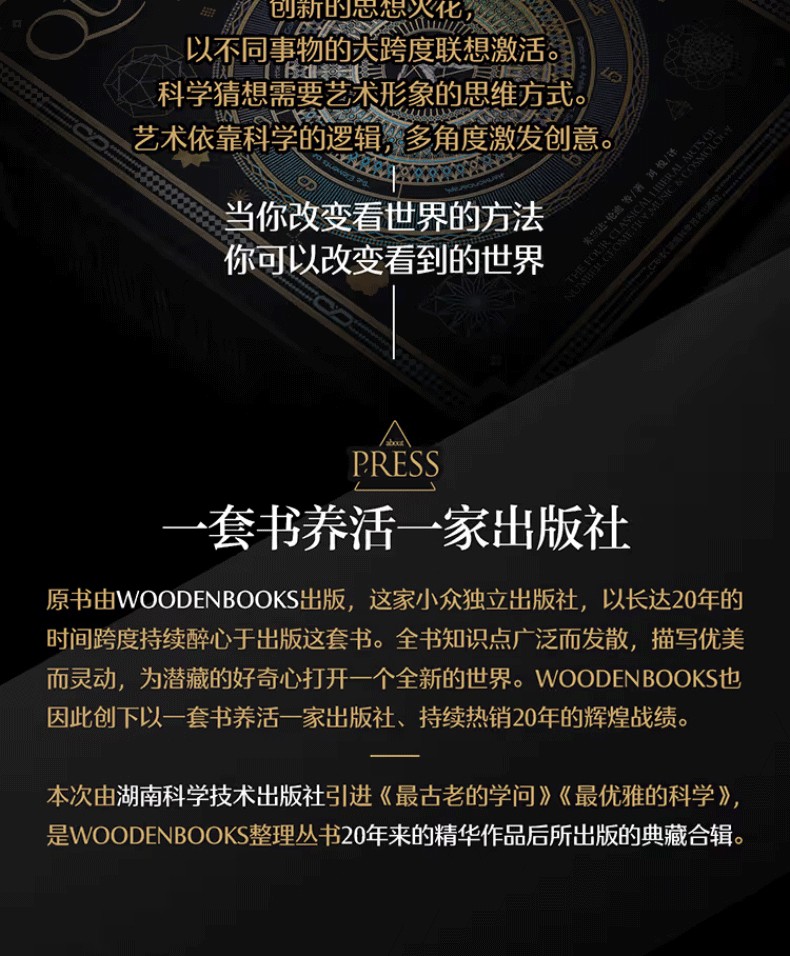 這本書包羅了「科學之美」系列中6 個廣受歡迎的科學主題,其中部分章節完全重新創作,增添了40 餘頁內容,並濃縮了數學、物理學、化學、生物學以及天文學的知識精華。無論你是未來的科學家,還是懵懂的門外漢,都值得一讀。本書以博斯特教授(Prof. Burkard Polster) 的《數學證明之美》開篇, 意在提醒讀者,世上有些事,就是明明白白、一目了然。接著是沃特金斯博士(Dr Matthew Watkins) 的《一生受用的公式》,大家不妨用它來考考自己。第三篇則探討了化學領域。馬特特維德先生在他的《基本元素》中,帶領我們漫遊週期表。第四篇是《創世神話》,格拉德博士以生動活潑的文風,描述了地球生命的漫漫歷程。莫夫貝茨博士所寫的《我是誰》,可以加深我們對生物學知識的理解。最後,讓我們睜大眼睛凝望蒼穹,在馬特特維德先生的另一力作《浩瀚的宇宙》中,好好體驗宇宙的奇妙。