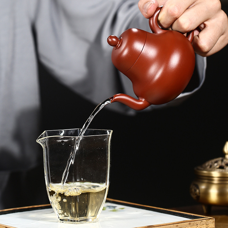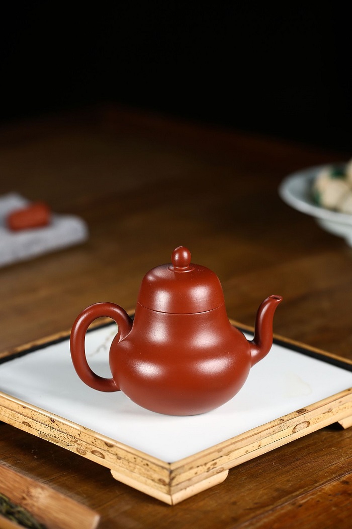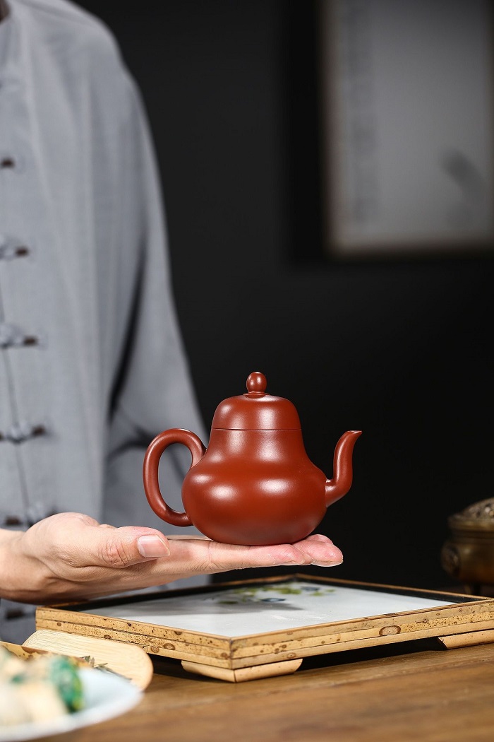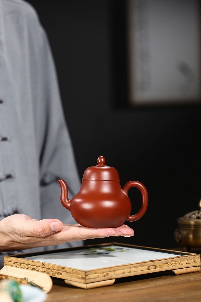 原礦朱泥全手工大紅袍小容量子怡石瓢紫砂壺100cc