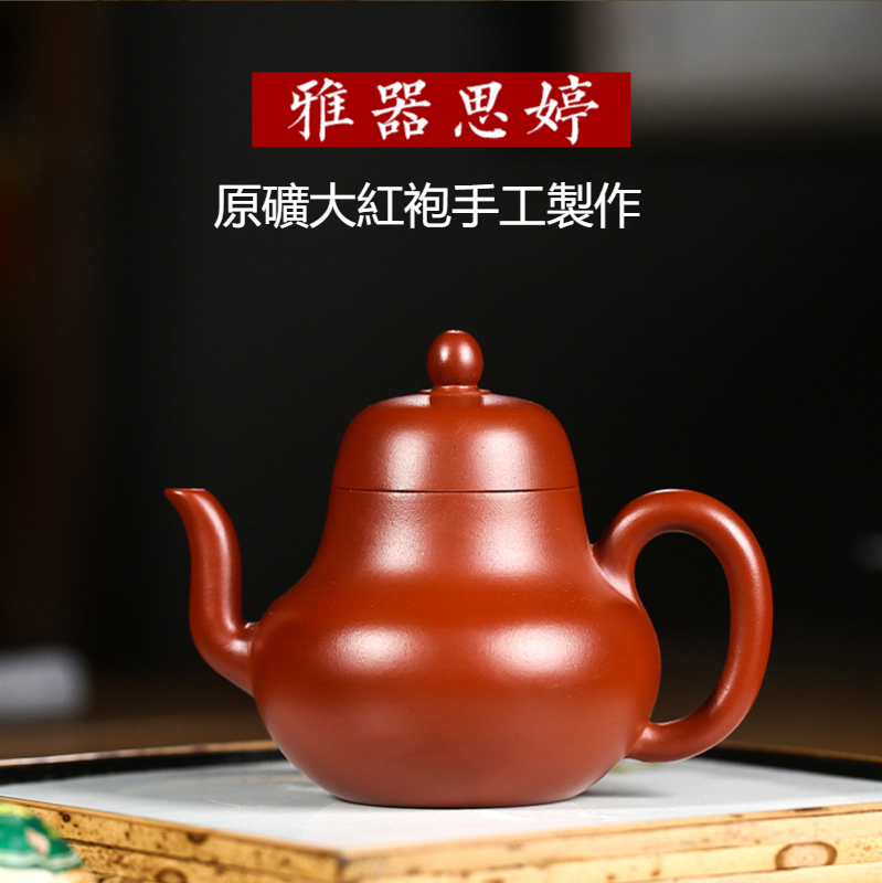 宜興純手工大口大紅袍 小容量紫砂茶壺(80cc)(禮盒包裝,附壺繩,收藏證書)