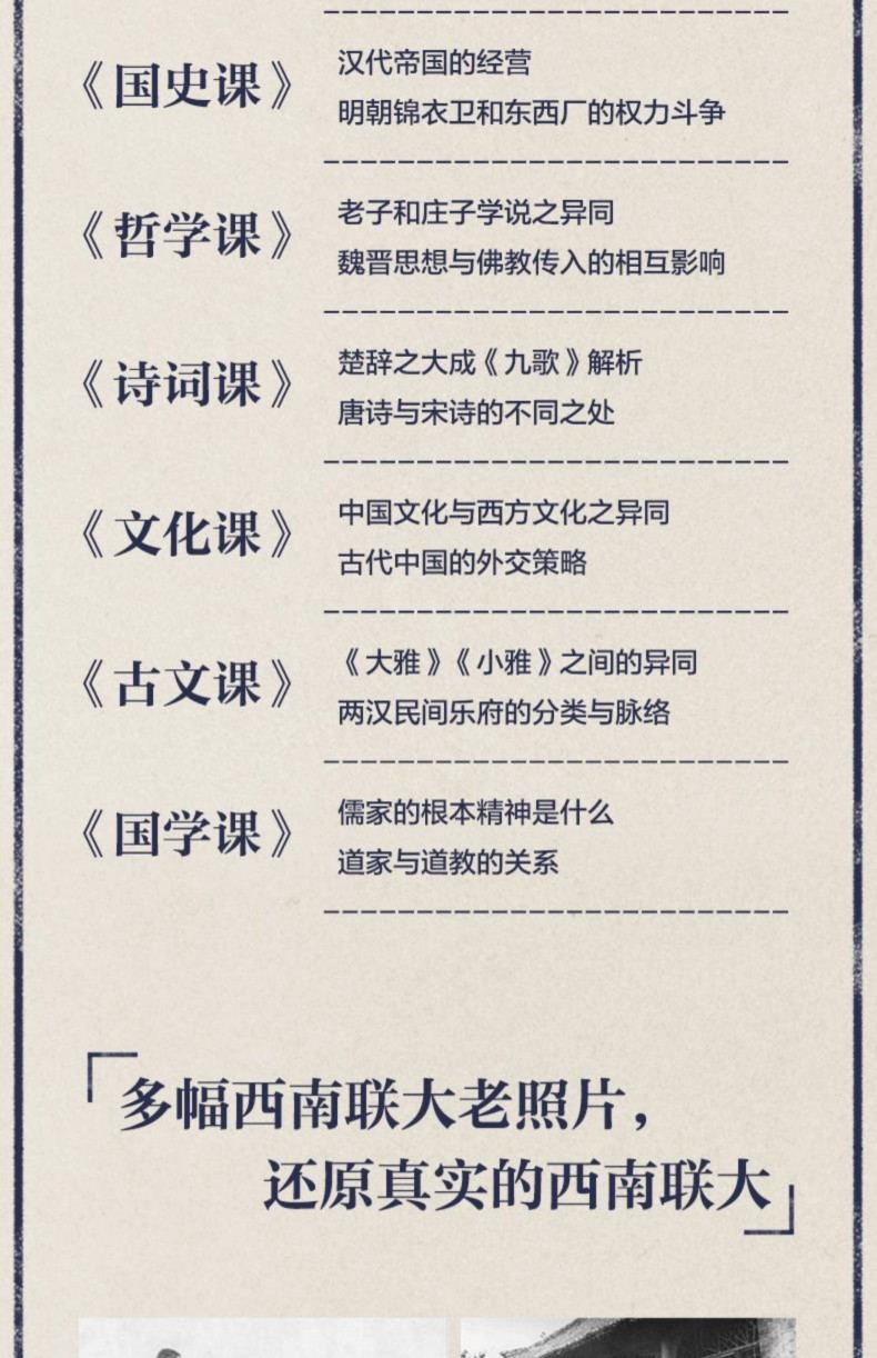 《西南聯大文史通識講·文學課》精選西南聯大教授關於文學講解的名篇,按照時間順序悉心講解歷代文學背景、名家名作,從先秦諸子到明清小說,以中國文化史 、文學史為線,精心講解數部經典名著及百家流派思想,領略文。