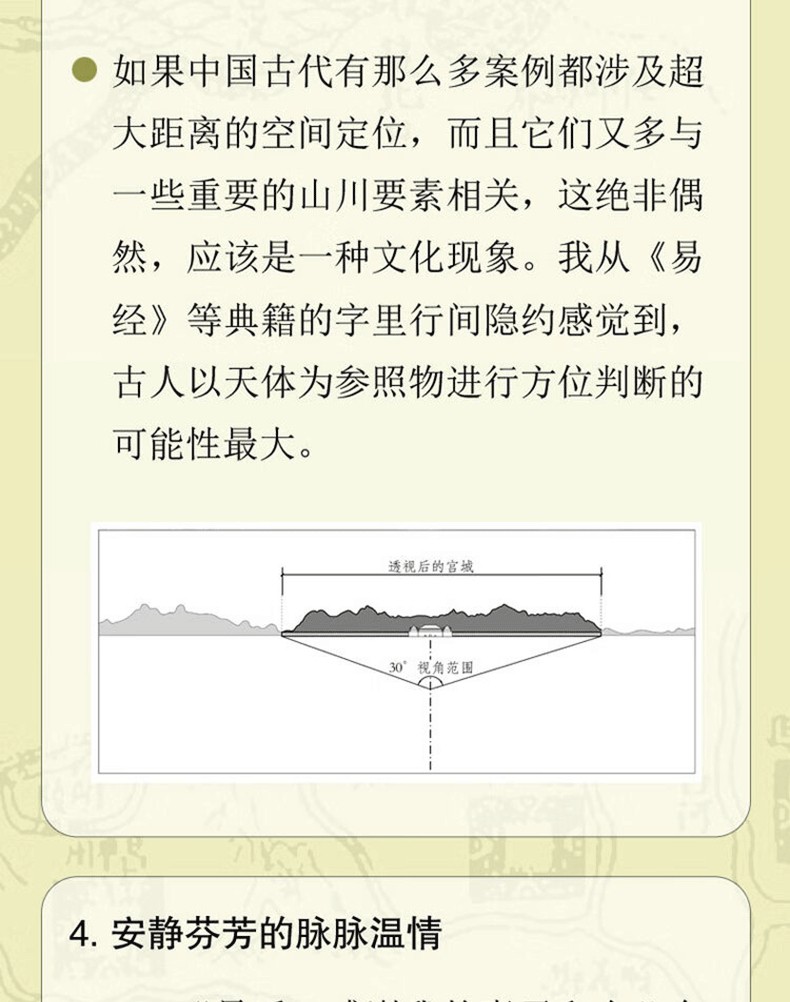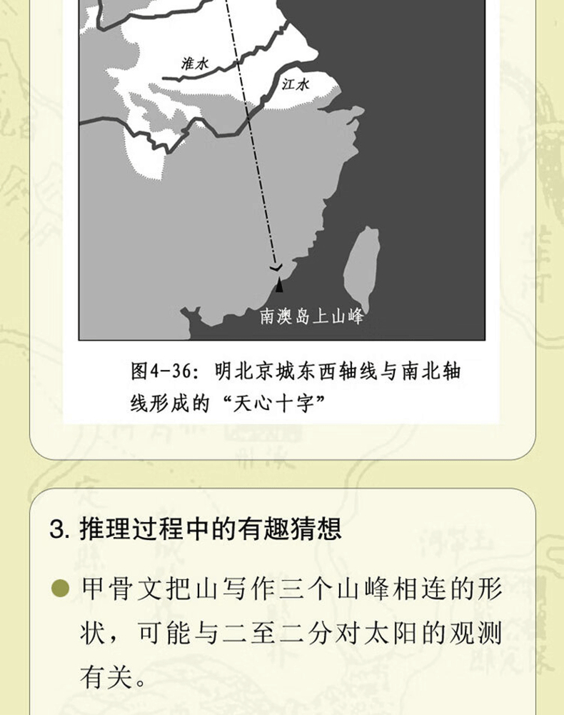 雖然裴秀的「製圖六體」早在魏晉時就已出現,但採用這種方法測繪的大比例尺地圖誤差較大,且要耗費巨大的人力、物力,似乎難以滿足精度要求相對較高、範圍大的空間定位的需求。不過理性告訴我,如果中國古代有這麼多案例都涉及超大距離的空間定位,而且它們又多與一些重要的山川要素相關,這絕非偶然,應該是一種文化現象。既然如此,中國古代就應該有相應可行的技術手段,以滿足超大範圍內空間定位的訴求。當時我從《易經》等典籍的字裡行間隱約感覺到,古人以天體為參照物進行方位判斷的可能性□□。