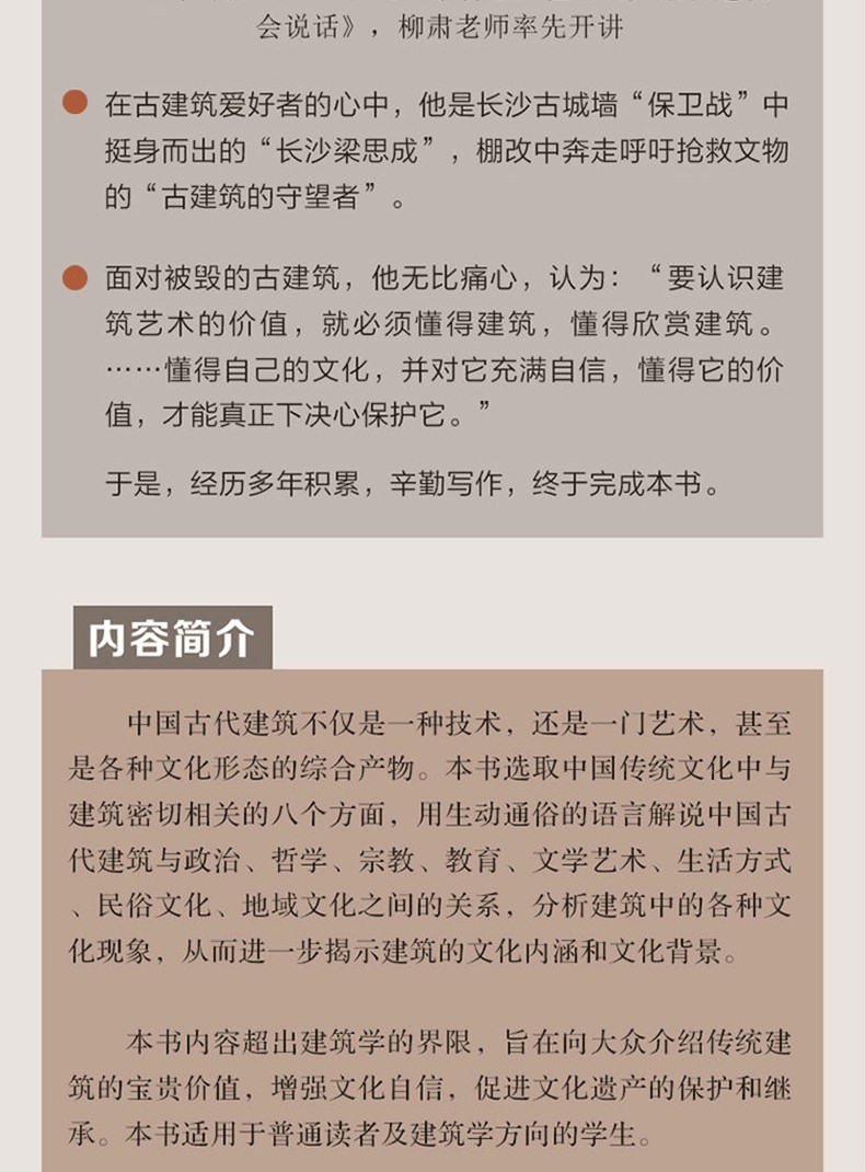 《營建的文明:中國傳統文化與傳統建築(修訂版)》內容超越建築學的界限,旨在向大眾介紹傳統建築的寶貴價值,增強文化自信,促進文化遺產的保護和繼承。 《營建的文明:中國傳統文化與傳統建築(修訂版)》適用於一般讀者及建築學方向的學生。