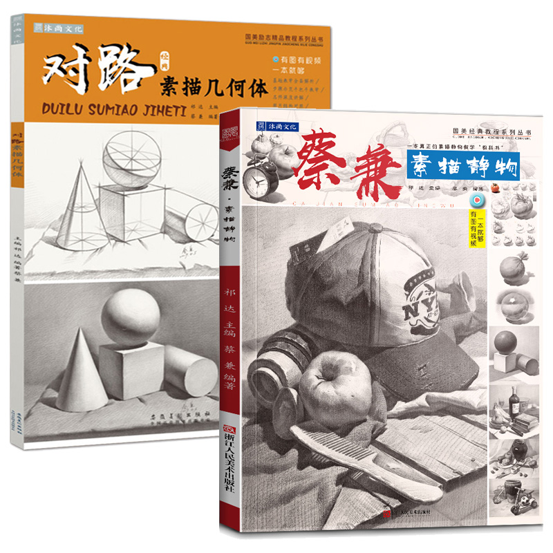 【大8開】蔡兼素描靜物 石膏幾何體繪畫+對路素描幾何體 石膏靜物形體照片對畫臨摹範本(共2冊)
