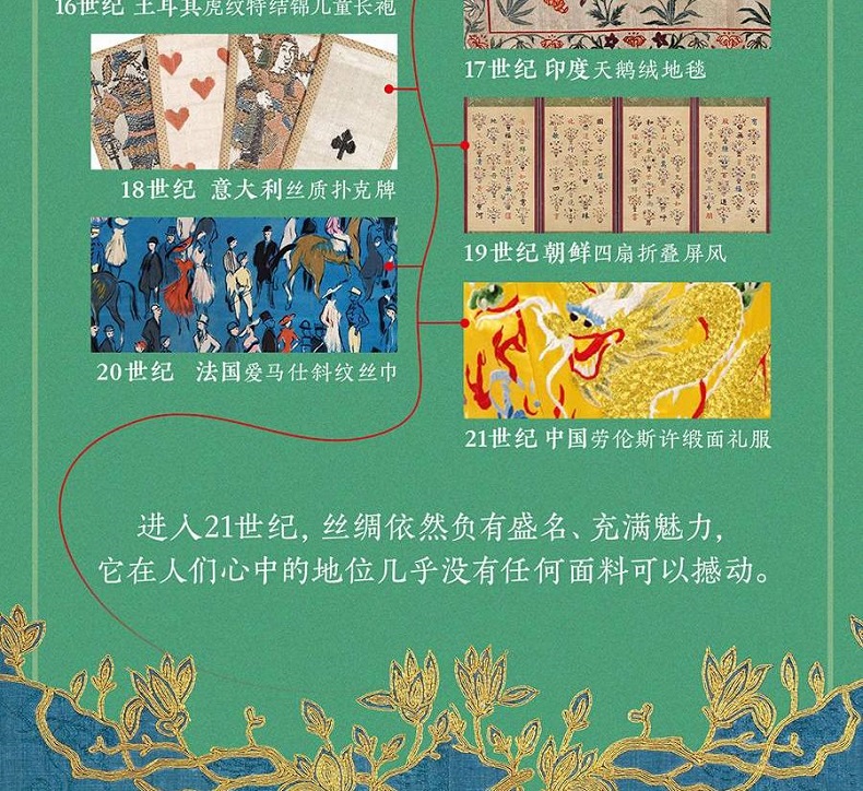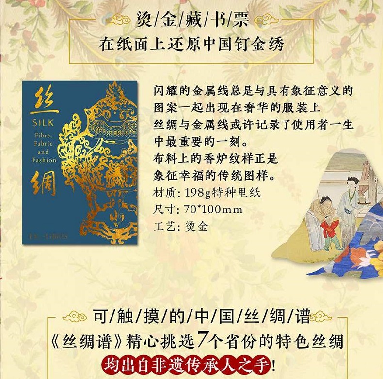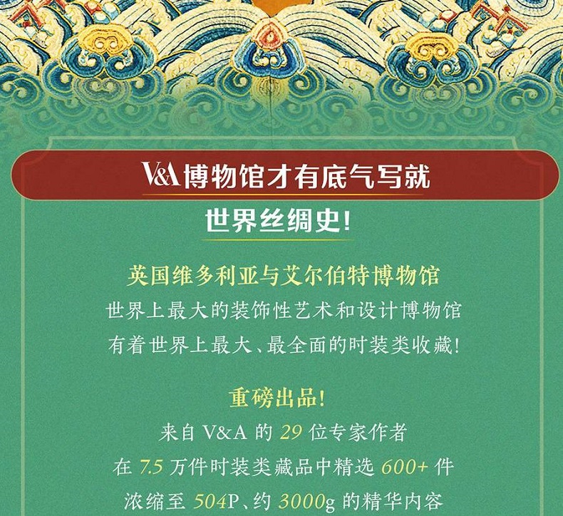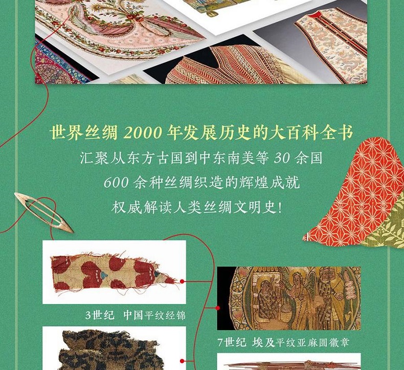 來自世界頂級博物館V&A的來自全球30+國家的600 種+的非凡絲綢藏品極致精美的超清藏品圖深入淺出的織造技術講解傳承古今的絕妙藝術成就由織布、時尚、博物領域專家「穿針引線」貫穿歷史、工藝、美學、時尚四大視野用閃亮絲線編寫波瀾萬丈的世界人類史