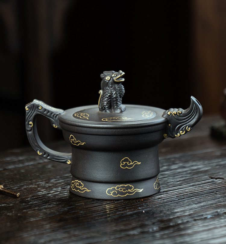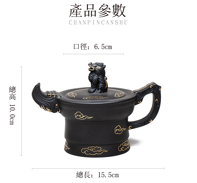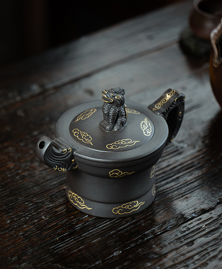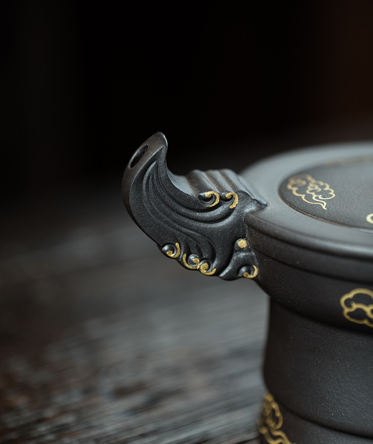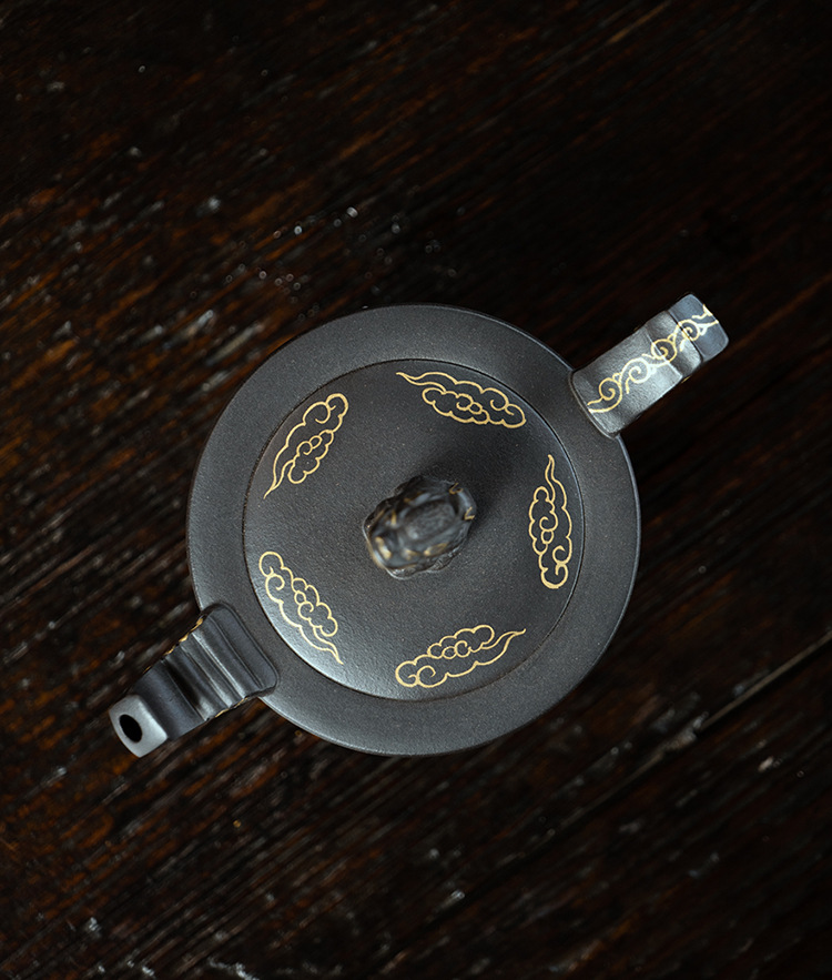 宜興原礦黑金砂雙色水平紫砂壺