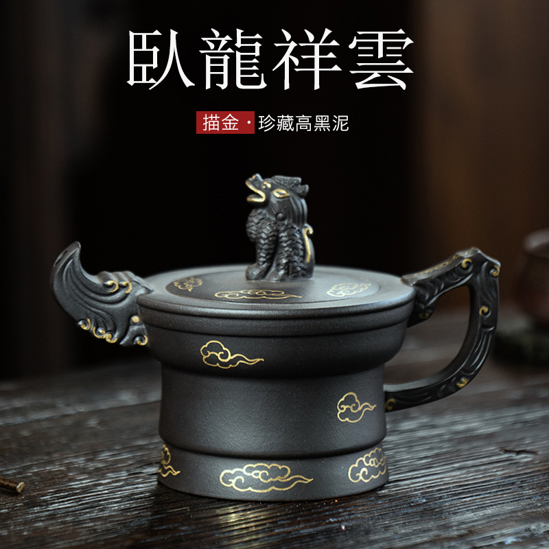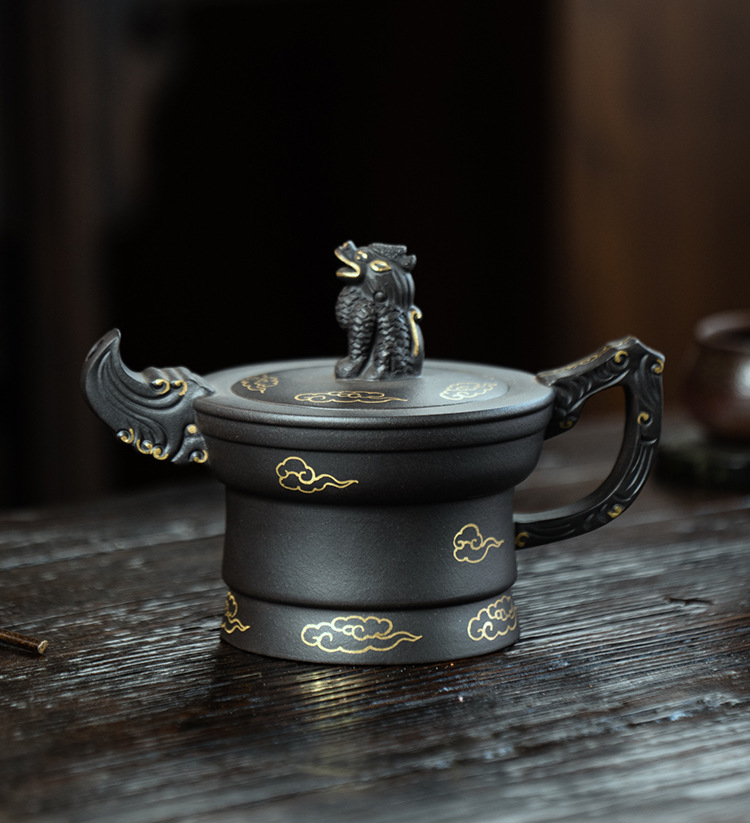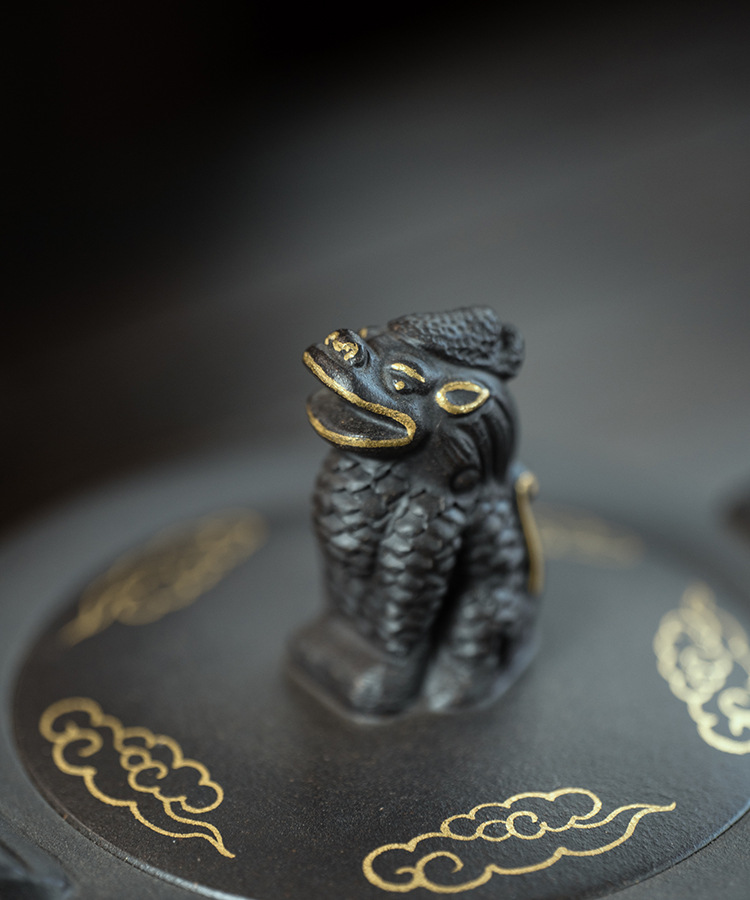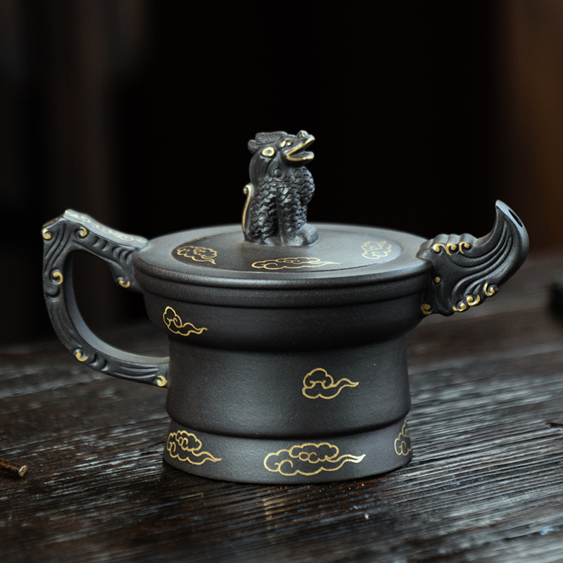 原礦大紅袍三足龍鼎紫砂壺