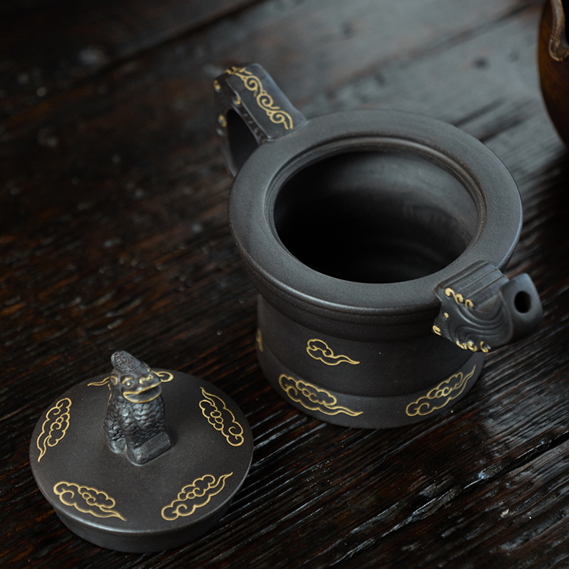 原礦黑泥膠泥 牛蓋四方壺