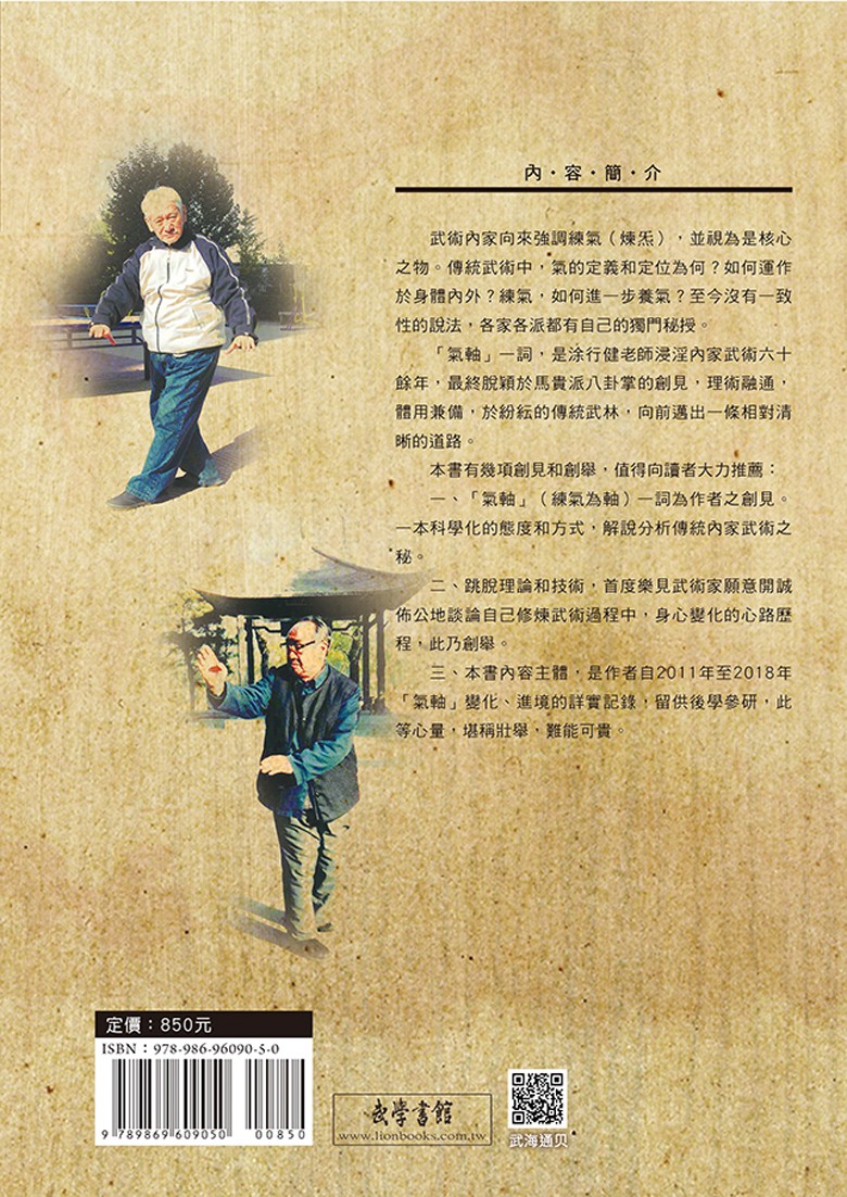 《內家拳氣軸論》內容紀錄武術家塗行健老師修煉內家武術的過程。武術內家將練氣視為核心,然而氣是如何運作,各家各派都有各自的獨門秘招。 「氣軸」(練氣為軸)為作者研究內家武術六十餘年,所體悟出的創見,希望透過本書分享身心變化的歷程。