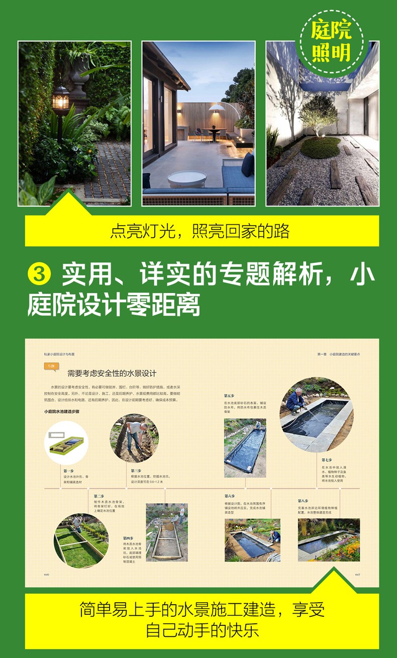 現代庭院的設計方法很多,創意內容也很豐富, 案例繁多,各種新型材料是層出不窮,本書希望能夠不拘泥於小庭院景觀設計的形式和理論,與大家共同探討如何營造美麗且舒適的生活空間。