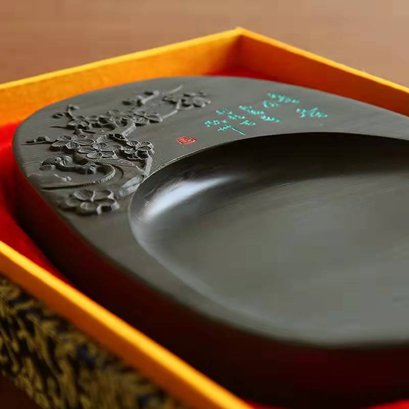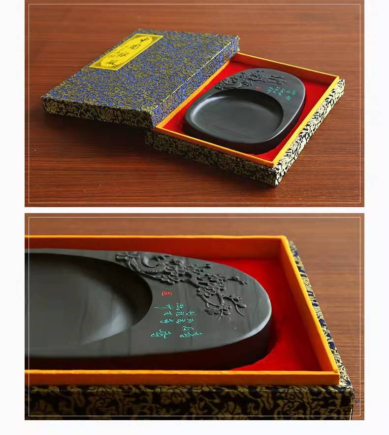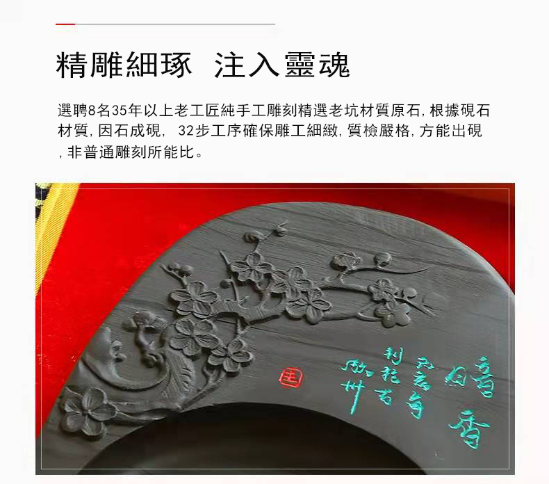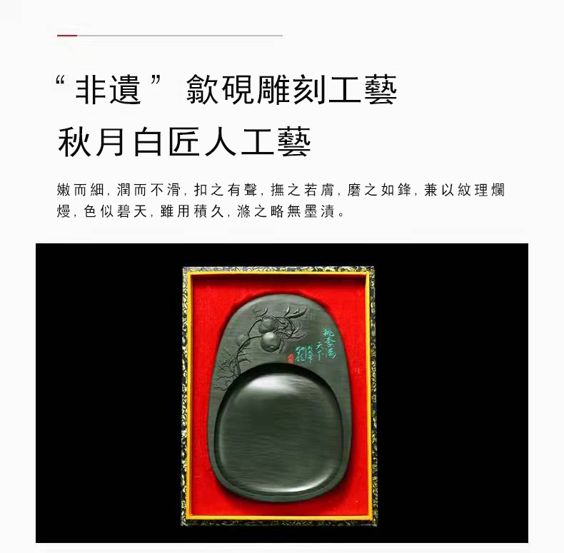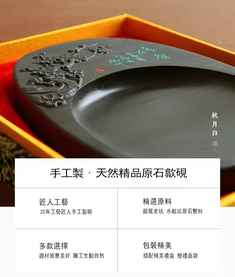 非遺天然原石歙硯 名師張子堅手製 龍尾山老坑黑龍尾小楷精品硯台 (14.5*14.5*3.2cm)精美禮盒包裝