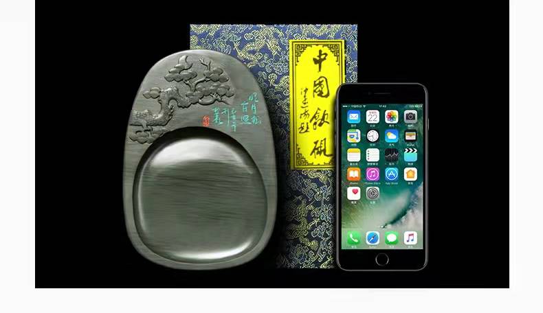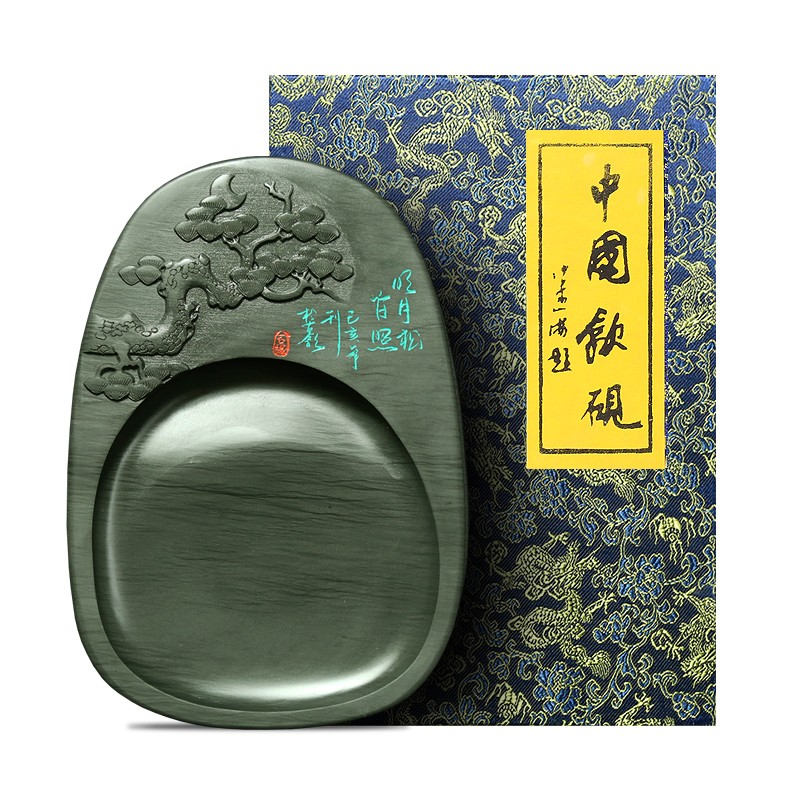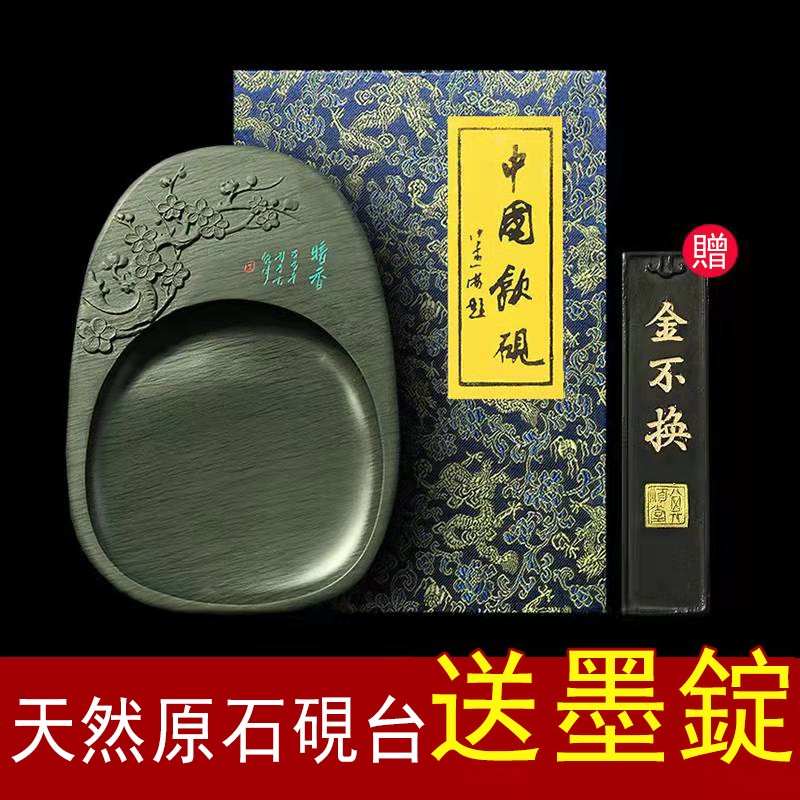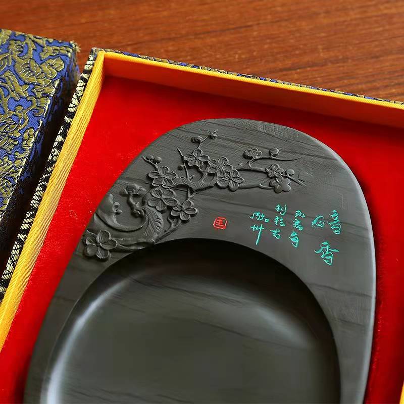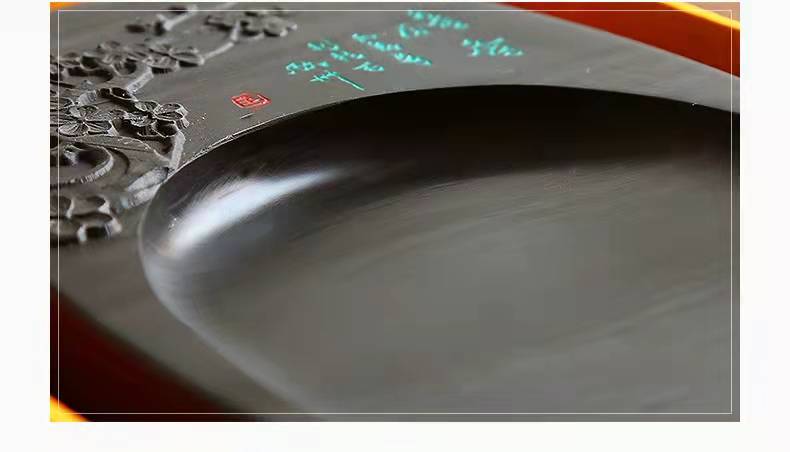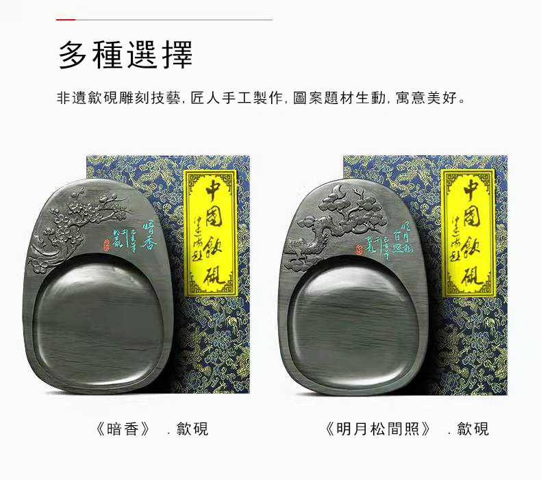 非遺天然原石歙硯 名師張子堅手製 龍尾山老坑黑龍尾小楷精品硯台 (14.5*14.5*3.2cm)精美禮盒包裝