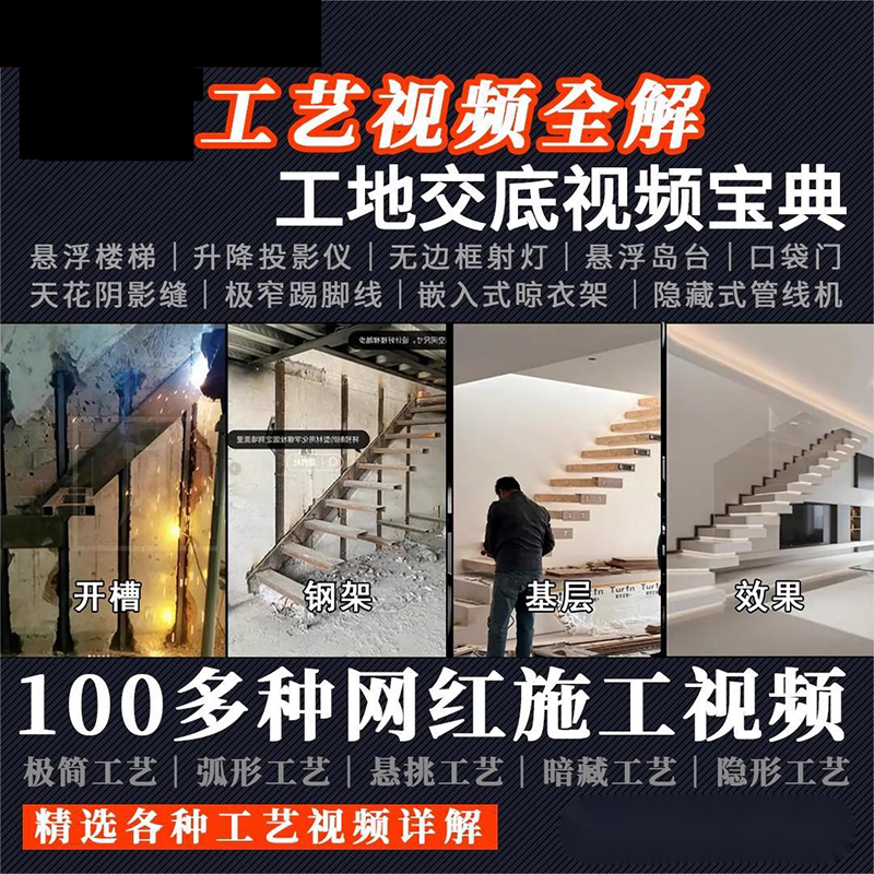 工地交底 施工工藝視頻全解(128G 隨身碟出貨 無需下載 即插即看)室內設計暗藏懸挑內嵌收口