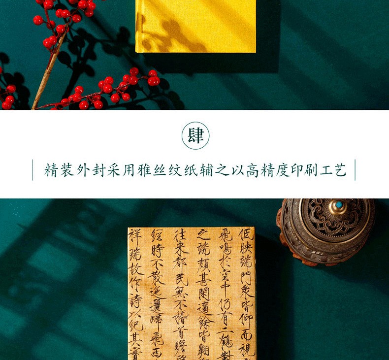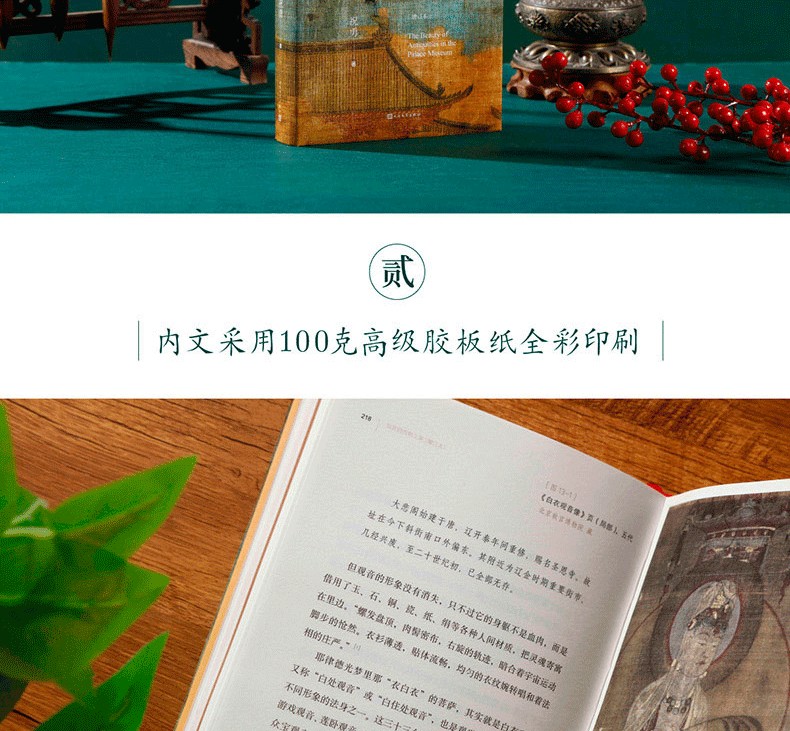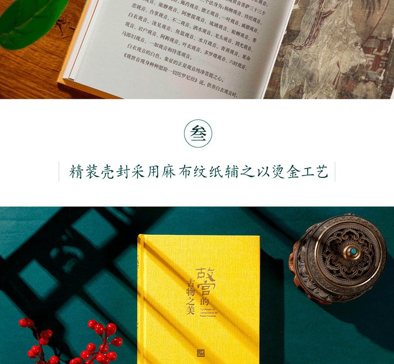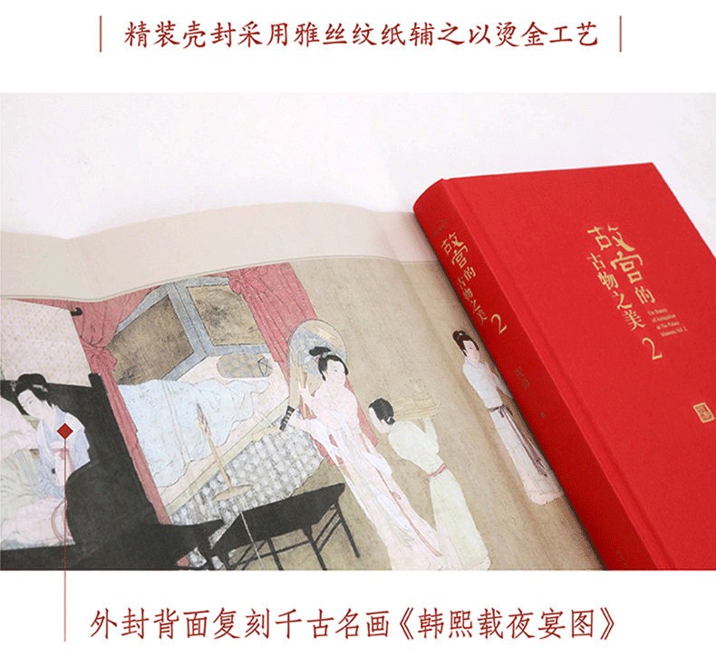 全書收錄故宮及海內外博物館近百幅高清詳圖,內文采用超感紙四色印刷,精裝殼封採用麻布紋紙輔之以燙金工藝,精裝外封採用雅絲紋紙輔之以高精度印刷工藝,做工精良。