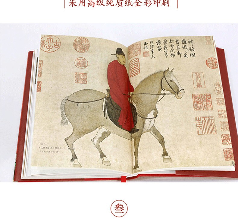 全書收錄故宮及海內外博物館數十張珍稀古畫高清詳圖,內文采用純質紙四色印刷,精裝殼封採用雅絲紋紙輔之以燙金工藝,精裝外封採用萊尼紋紙輔之以高精度印刷工藝,封面背面復刻千古名畫《千里江山圖》,做工精良,書籍本身,即是美物。