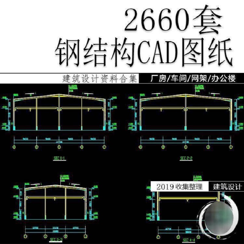 鋼結構工程建築設計CAD施工圖紙 U盤16G 平面效果圖辦公樓車間廠房方案(無需下載,即插即看)