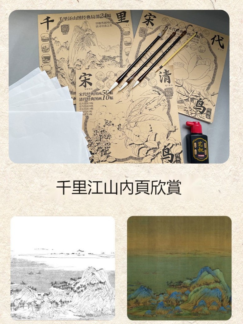 【精裝大8開 8.5KG珍藏版 】最美中國畫 中國名畫畫冊 名家代表作收錄 千里江山圖 洛神賦 女史箴步輦仕女臨摹畫冊 13張加長大拉頁 單張長達1.7米
