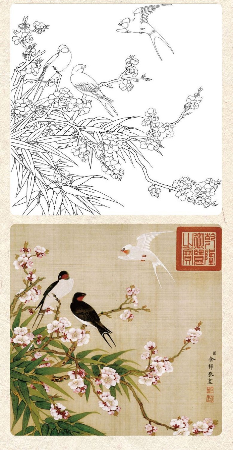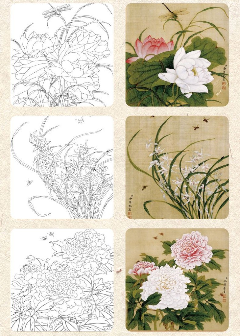 【湖州真絲宋錦函套】芥子園畫傳:翎毛草蟲花卉譜一函3卷 宣紙全彩原色高清印製 附收藏證書