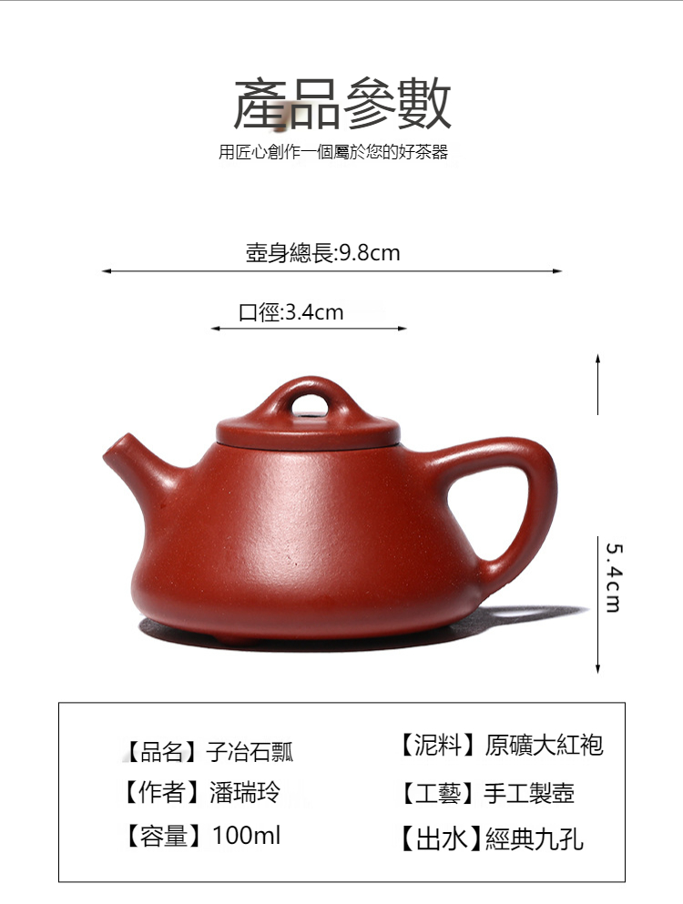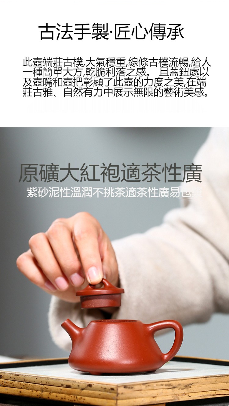 宜興純手工大口大紅袍 小容量紫砂茶壺(80cc)(禮盒包裝,附壺繩,收藏證書)