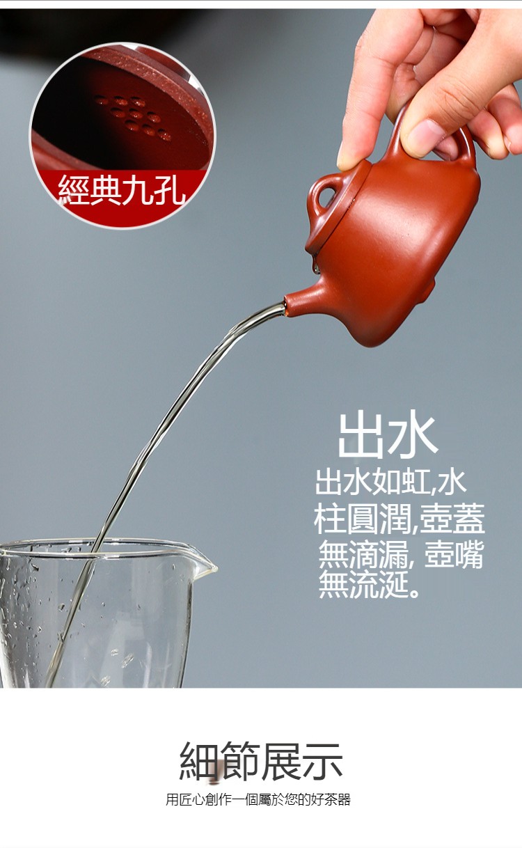 宜興紫砂原礦大紅袍手工井欄紫砂壺