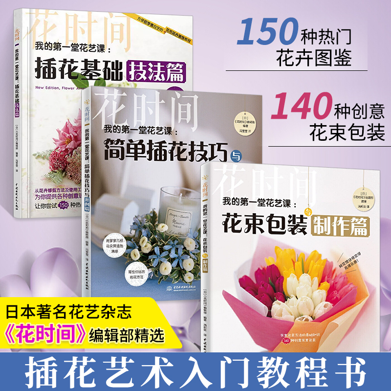 我的堂花藝課(日本花藝:花時間)3冊 :花束包裝設計與製作篇+插花基礎技法篇+簡單插花技巧與案例篇