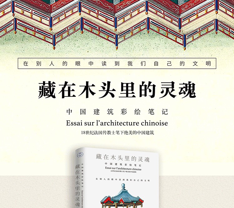 《藏在木頭里的靈魂:中國建築彩繪筆記》是一本描繪介紹中國建築的畫譜手稿,完成於十八世紀,作者是姓名、履歷已不可考的法國傳教士。原書分上下兩冊,共包含188幅繪畫。上冊主要是建築常用工具、磚瓦牆、照壁、亭子、橋和塔。下冊主要是大型整體建築結構和住宅內部擺設、台等。在沒有影像的時代,來自西方傳教士(或學者)通過繪畫這種方式記錄著他們了解的東方世界。通過這些繪畫也讓西方世界對於東方古國有更直觀的感受。另外,書中的才華製作精美,內容豐富,哪怕僅僅當作裝飾畫冊來看,也是美不勝收。