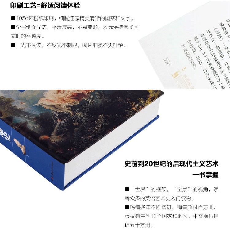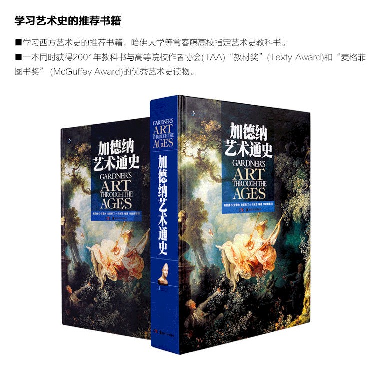 《加德納藝術通史》因廣受好評而不斷再版,成為讀者眾多,流傳較廣的英文藝術史書籍。同時還被美國許多選為藝術史專業的教材,又是一本頗具專業的藝術通史類教科書。該書遵循加德納的基本框架,以“全景化”的視角來闡釋藝術發展的主旨,內容從史前到20世紀的後現代主義藝術,涉及繪畫、雕塑、建築、設計、攝影及工藝美術等多個藝術門類,體現出權重平衡的整體觀和客觀性。在全面的基礎上,加德納藝術通史還注重圖像完整的歷史與文化背景,以及它在過去和現在的不同學術地位,為相關專業的學生、老師以及有這方面興趣的人士提供了更多的幫助。相較之前的各種版本,《加德納藝術通史》新增了豐富的圖像與文字資料,並且圖像和翻譯的質量也有大幅提高。 ...