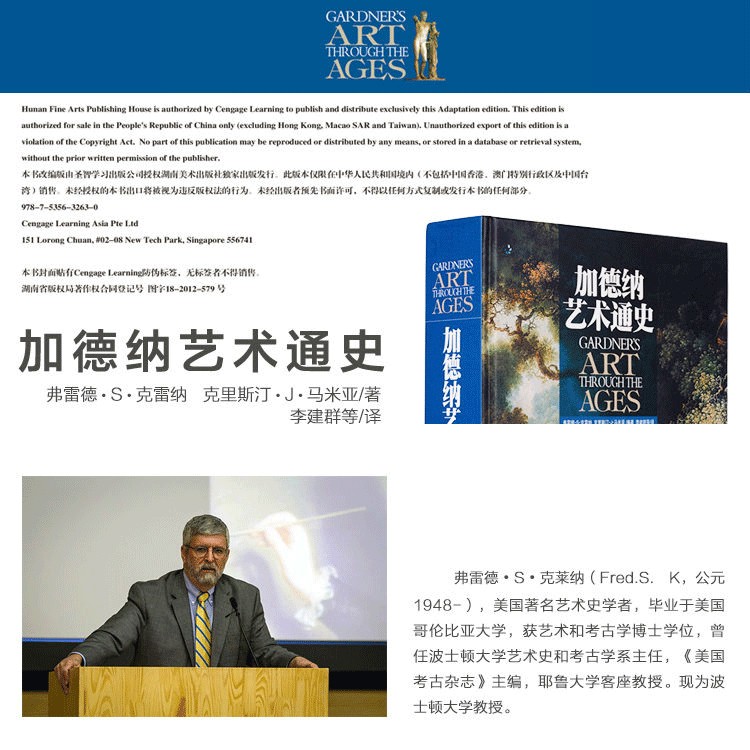弗雷德·S·克雷納(Fred.S.K,公元948-),美國知名藝術史學者,於美國哥倫比亞,獲藝術和考古學博士,曾任波士頓藝術史和考古學系主任,《美國考古雜誌》主編,耶魯客座教授。現為波士頓教授。李建裙,現為中央美術學院美術史系教授,外國美術教研室教師,碩士導師。主攻西方近現代美術史。 984-987年中央美術學院美術史系,獲碩士 987至今,中央美術院美術史系教師 992-993年,倫敦考陶爾美術學院訪問學者,主修中世紀美術 2002年,倫敦學院美術史系高訪學者,主修英國美術史,西方女性藝術研究。該書由李建裙女士組織中央美院師生翻譯團隊集體完成。 ...