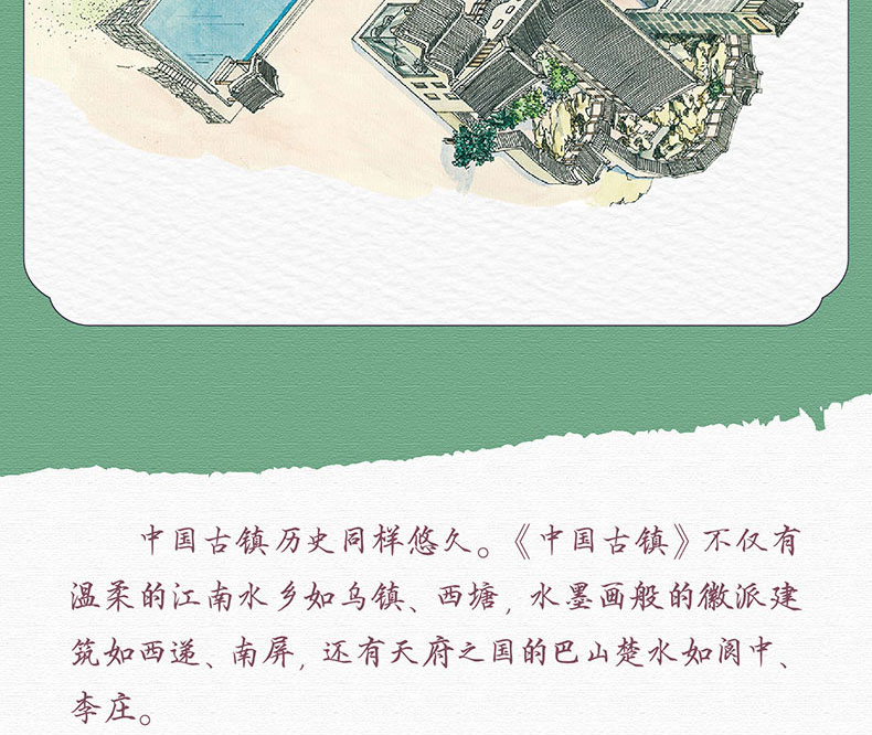 特色4:手繪100個中國古鎮的圖書,目前市面上少有。 市面上多以旅遊書居多,藝術特色少一點。