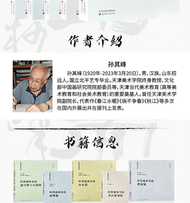 孫其峰先生是當代著名的中國畫家、書法家、藝術教育家,是天津美術學院中國畫教學體系的奠基者,在花鳥畫、書法創作上取得了卓越成就。 孫先生在教學實踐中,以「相容併包」的開放態度,將學院教學方式與中國傳統繪畫以臨摹入手的兩種訓練方法結合在一起,主張寫生與臨摹並重,重視學生對中國傳統繪畫 的認識。 既“師古人”,亦“師造化”,在教學實踐中重視規律,舉一反三,開創了中國花鳥畫教學的新方式。