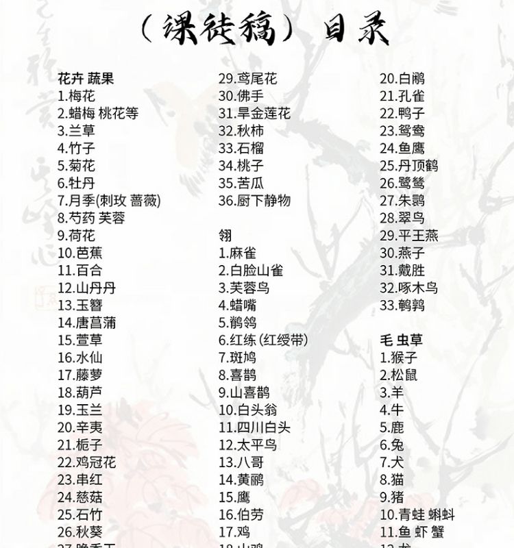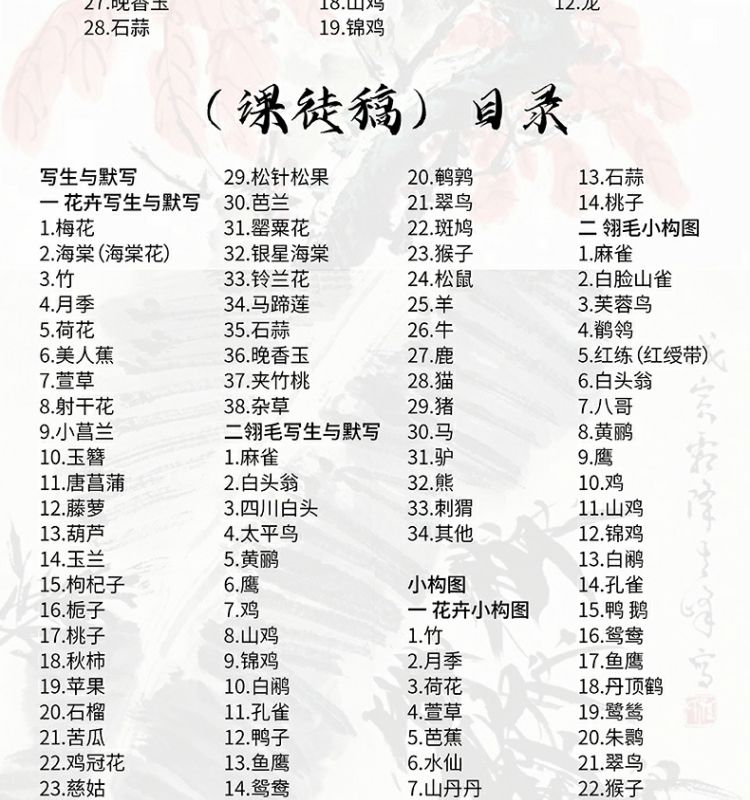 本書系編者根據孫其峰先生多年授課的課圖稿精心整理出的一部供初學者參考的一部國畫入門技法的圖書。 全書分為三個部分,分別為花卉·蔬果、翎、毛·蟲草,每一部分又依各種題材進行分類,從畫理、畫法、構圖、技巧、示範等方面進行詳細的講解。