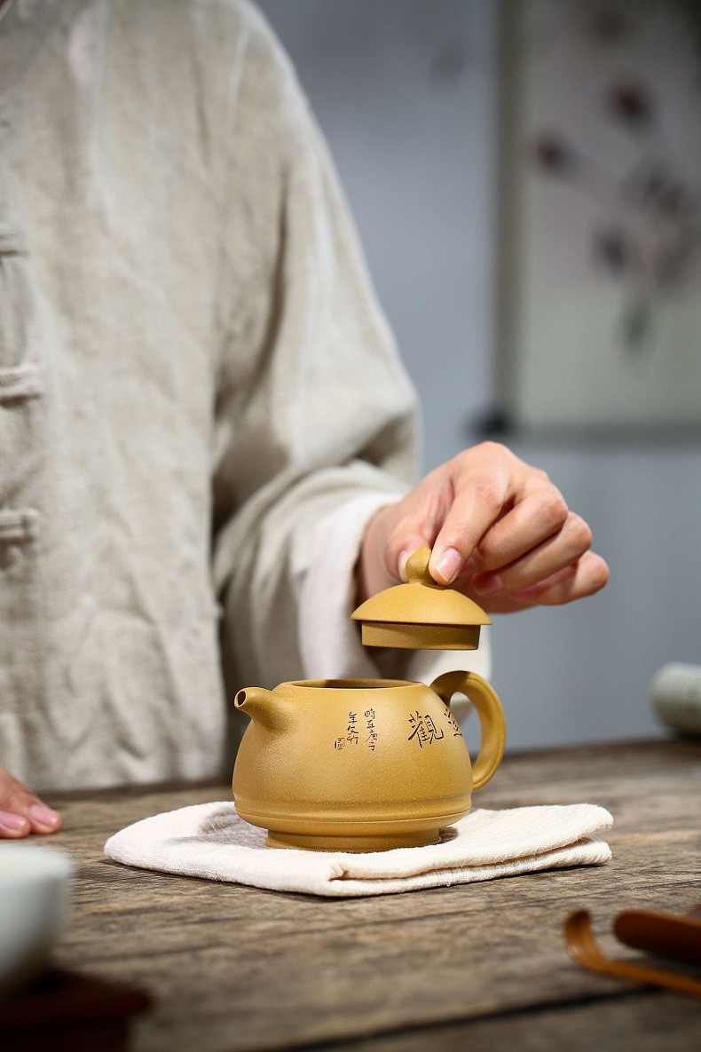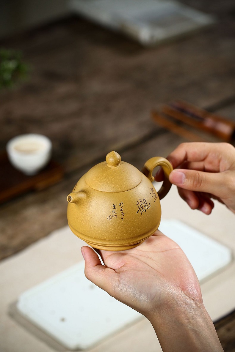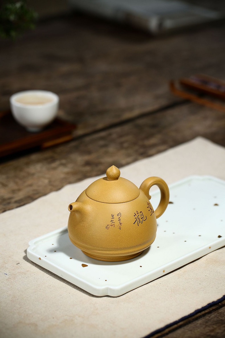 宜興黃金段泥手工漢瓦紫砂壺