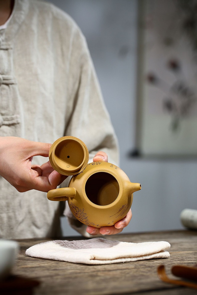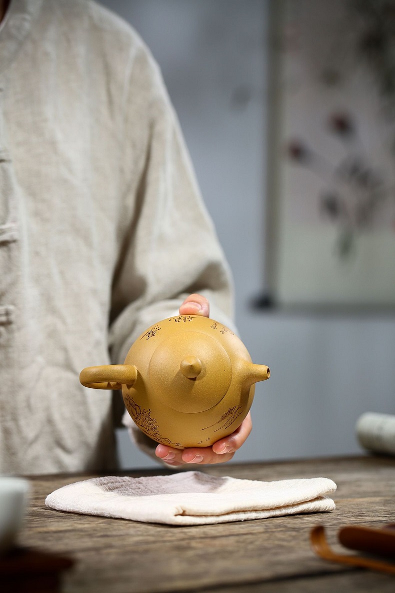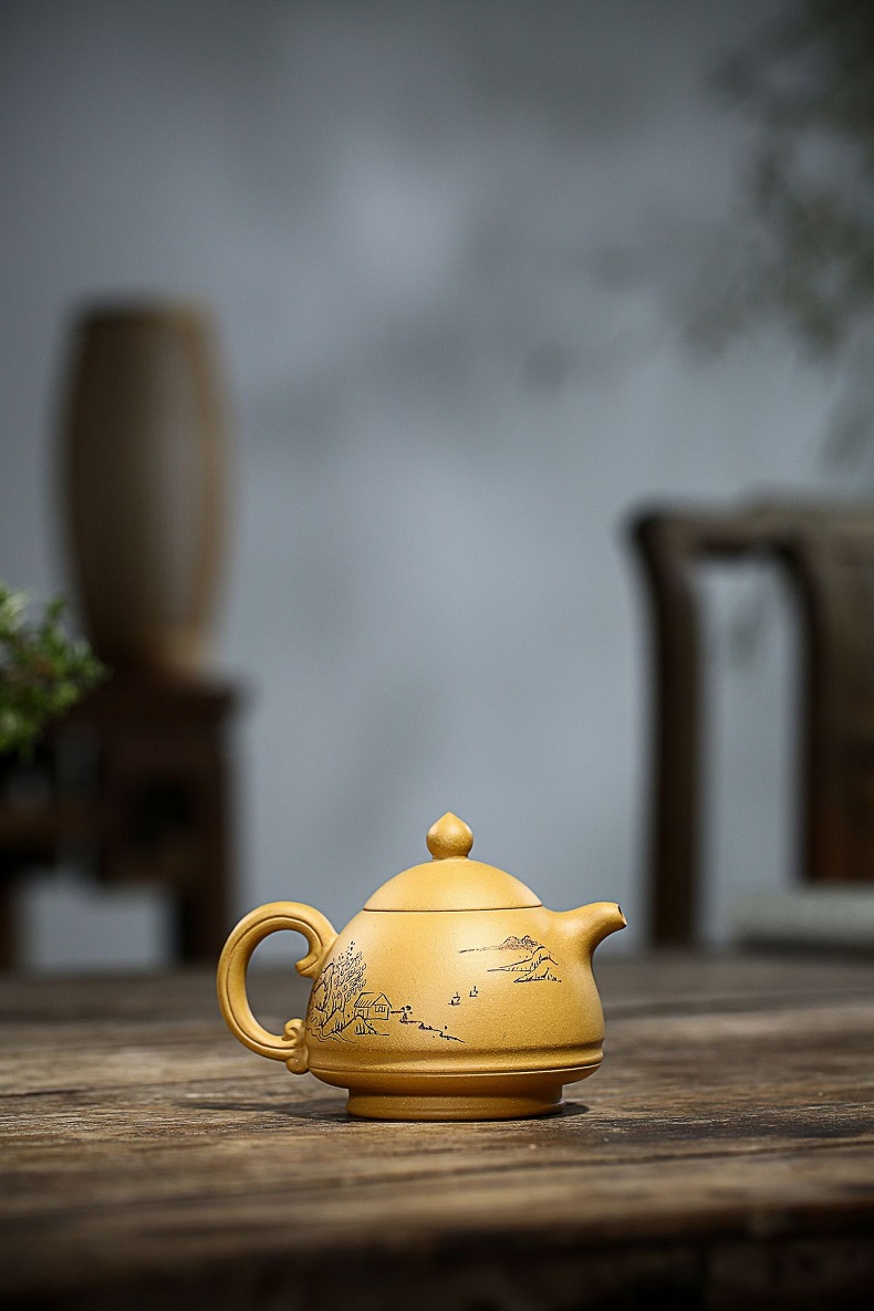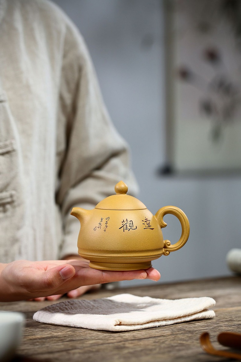 宜興黃金段泥手工漢瓦紫砂壺