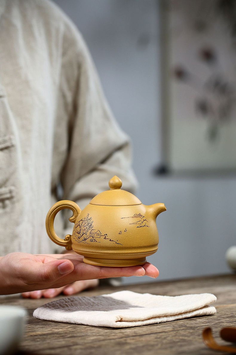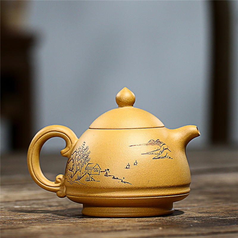 名家刻繪 三足乳鼎 降坡泥紫砂壺