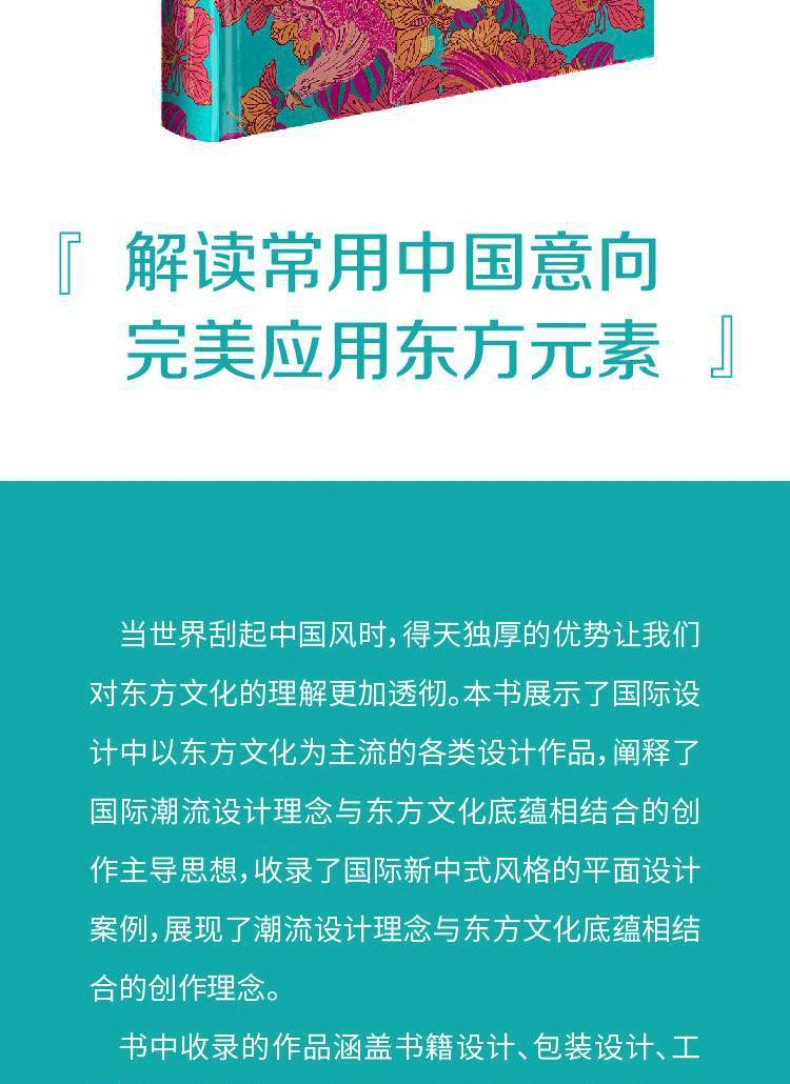 書中涵蓋了諸多內容,涵蓋品牌、包裝、招貼、店面、書籍等,展示了以東方文化為主流的各類設計作品,豐富的案例讓讀者更能了解設計者如何靈活多變地把東方文化運用到設計中,闡釋了國際潮流設計理念與東方文化底蘊相結合的創作主導思想。書中各種獨特的設計必定會啟發讀者無限靈感。