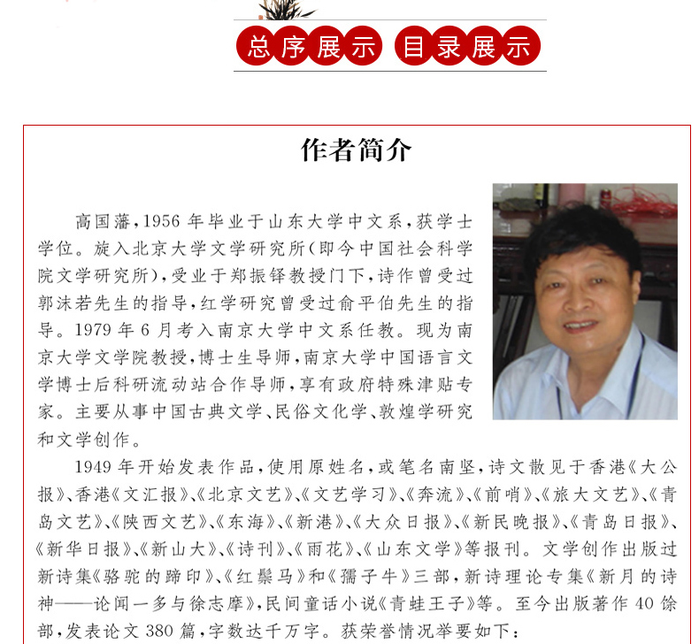 高國藩,1956年畢業於山東大學中文系,獲學士學位。旋入北京大學文學研究所(即今中國社會科學院文學研究所),受業於鄭振鐸教授門下,詩作曾受過郭沫若先生的指導,紅學研究曾受過俞平伯先生的指導。 1979年6月考入南京大學中文系任教。現為南京大學文學院教授,博士生導師,南京大學中國語言文學博士後科研流動站合作導師,享有政府特殊津貼專家。主要從事中國古典文學、民俗文化學、敦煌學研究和文學創作。