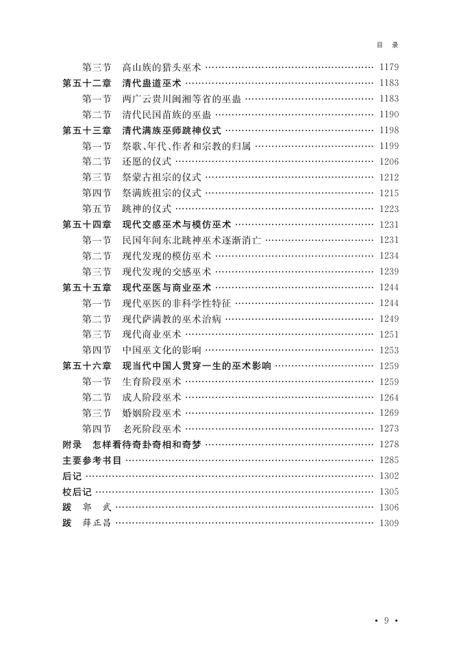 但是,不要以為單純依靠翻檢浩如煙海的中國古典文獻,就能夠將中國巫術史尤其是通史寫成。辛亥革命以來出現過諸多大學者,他們對巫與巫術發表過非常精闢的見解,但當時並沒有具備寫成中國巫術史的條件。因為中國是個擁有五十六個民族的偉大國家,要寫成一部巫術史不能單靠堆積單一的文獻資料,它必須有民俗資料配合,和各學科文化發展齊頭並進、互相呼應,才能形成一個巫文化傳承整體。
