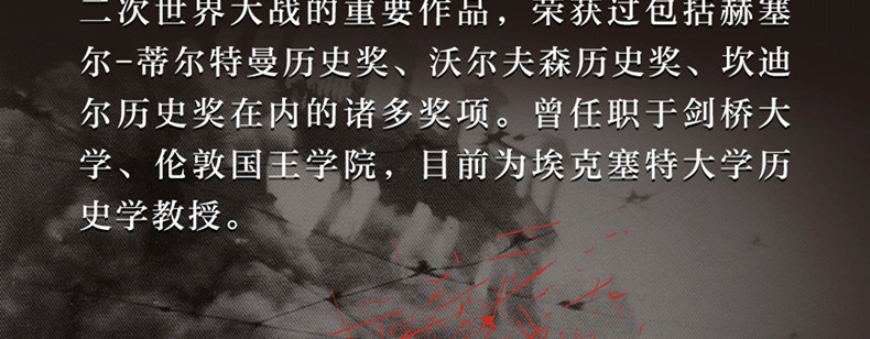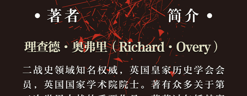 理查德 奧弗里(Richard Overy),二戰史領域知名權威,英國皇家歷史學會會員,英國國家學術院士。著有許多關於第二次世界大戰的重要作品,榮獲包括赫塞爾-蒂爾特曼歷史獎、沃爾夫森歷史獎、坎蒂爾歷史獎在內的諸多獎項。曾任職於劍橋大學、倫敦國王學院,目前為艾克希特大學歷史學教授。