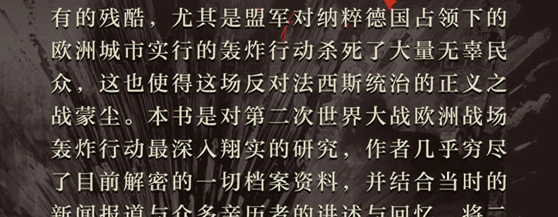 一段非凡而影響深遠的歷史……第一次完整敘述了發生在歐洲的轟炸戰。奧弗里研究的範圍十分廣泛,同時又進行了深入充分的挖掘,這本書的可讀性也很高