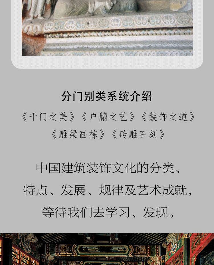 《雕樑畫棟》是 中國古代建築裝飾五書 中的一本,介紹的是鄉土建築木結構各個構件的功能和特殊形態,這些構件大多數顯露在外,所以鄉土建築很注重對這些樑枋構件進行美化加工,且形式和內容上都比較生動自然,不受的法式約束。 《雕樑畫棟》內容豐富而全面,圖文並茂,充分展現了鄉土建築木結構之藝術美。對鄉土建築文化研究者和愛好者來說具很好的收藏價值。