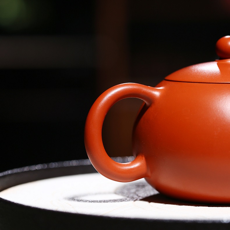 原礦朱泥全手工大紅袍小容量子怡石瓢紫砂壺100cc