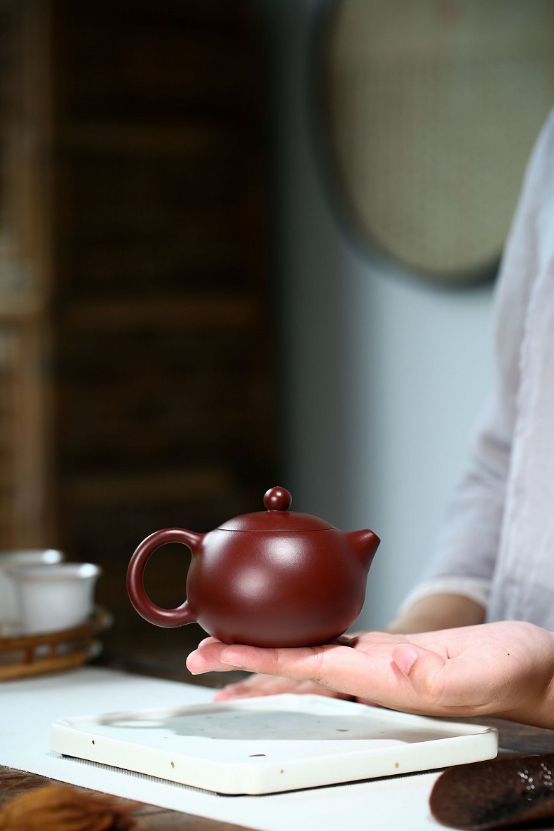 宜興手製小容量大紅袍西施紫砂壺100cc
