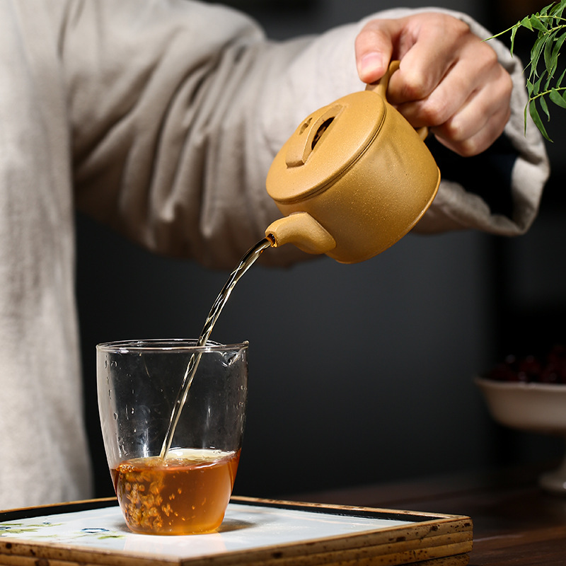 【泥料特點】砂土氣重,似淳實農民,日久使用,漸露鋒芒,養成變化甚大,溫潤莊重。線條優美自然,嘴把搭配協調,身桶配上細長的把搭配,更顯優雅