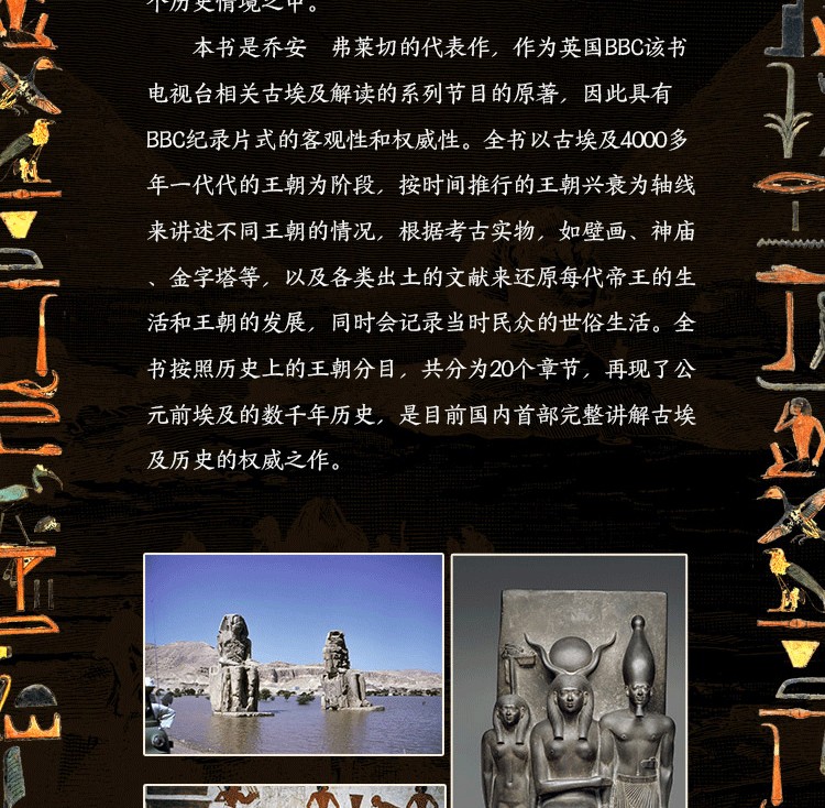 埃及世界上偉大的文明體,其古代故事跨越了四千多年的歷史時段,而這一歷史時段又塑造了日後整個世界的形態。 《埃及四千年:主宰世界歷史進程的偉大文明》將古埃及的往事連綴成書,完整地講述出來,記錄王朝的興衰沉浮,並將古埃及人的整個世界呈現於我們每個人都可以理解的一個歷史情境之中。