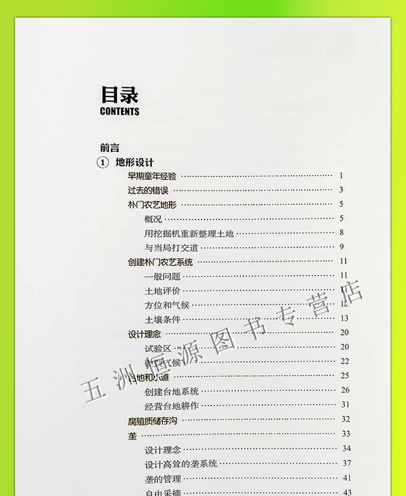 本書講到了耕作的各個方面,不但講到作者如何在農場上創造一個完整的系統,還講到了作者如何從中謀生,樸門農藝的一個重要部分就是逐漸了解自己的個人地位,進而了解到每一塊地都有它獨特的個性和特點,根據這些特點去使用土地,不用化肥,不用各種化學物品,通過土地上的各種生物的相互制約和相互聯繫營造一個和諧的生態環境。