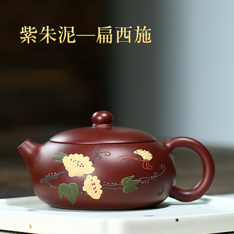 原礦紫朱泥扁西施紫砂壺