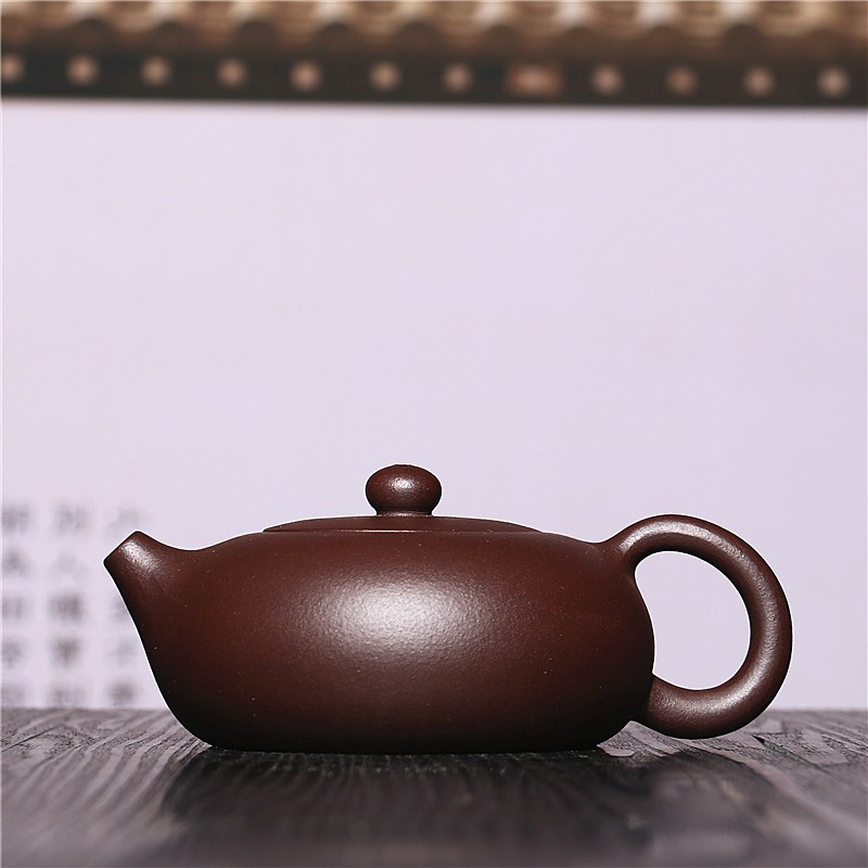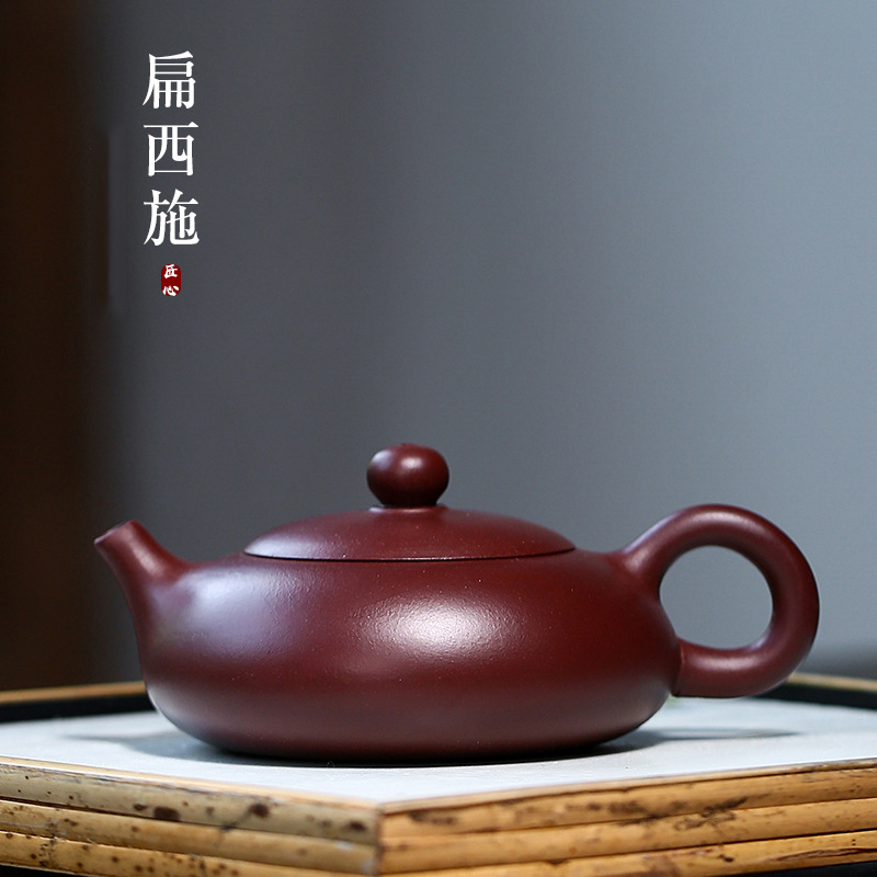 原礦紫朱泥扁西施紫砂壺