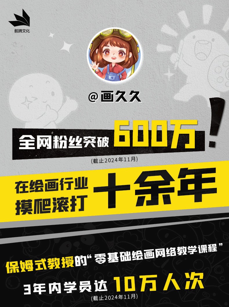 1.作者畫久久,全平台粉絲總量614萬,在各平台分享的自學繪畫教程,受到歡迎