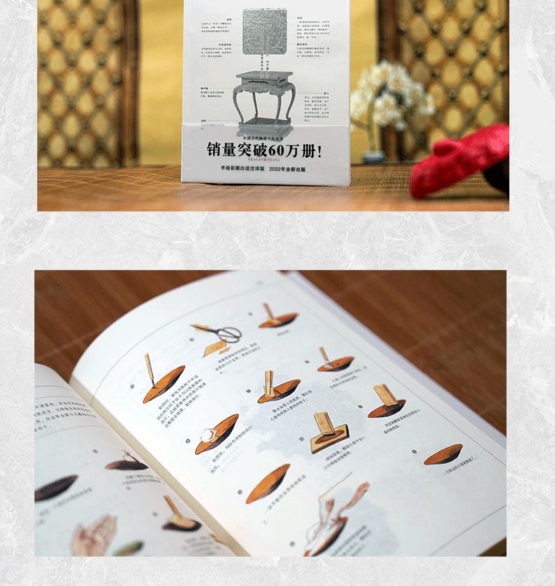 本版《髹飾錄》的註解者,為四川遂寧的宋瓷專家田開鵬君,配有600餘幅插圖(含手繪),以直觀解析中國古代髹漆技藝所必備的各種原料、工具 ,各種漆器的形態和製法,以及髹飾過程中因操作不當可能產生的弊病等,是一部技藝精到、研習有序的髹漆工藝傳世名作。